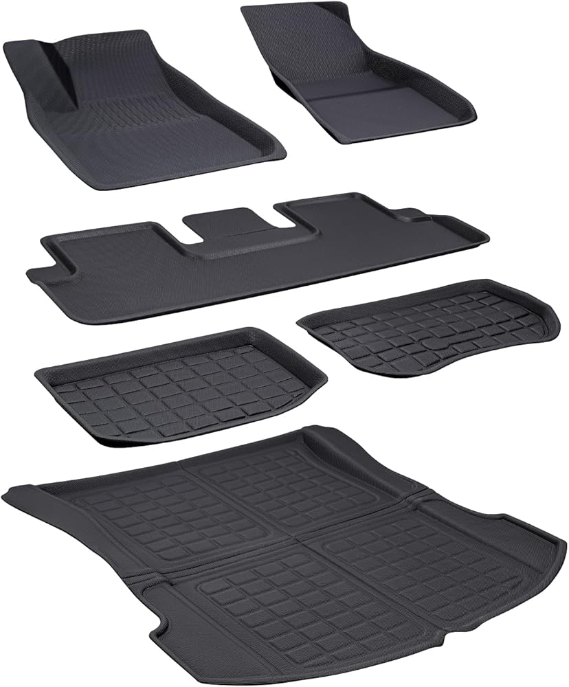 TAPTES 6 قطع لسجادات أرضية Tesla Model 3 2023 2022 2021، مجموعة كاملة من خطوط الأرضية الممتازة للطراز 3 بطانات الشحن الأمامية والخلفية لجميع الأحوال الجوية، تناسب مخصص للطراز 3 الملحقات الداخلية 2021-2023
