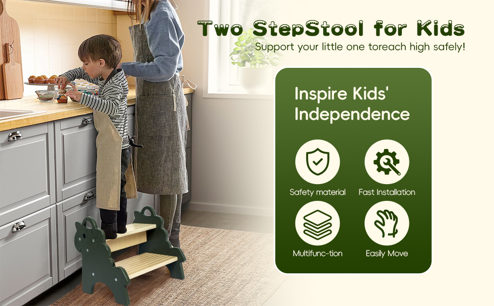 تصميم مانع للانزلاق: لأسباب تتعلق بالسلامة، تتميز كل خطوة على مقاعد الخطوات الخشبية لدينا بطبقة نسيجية مقاومة للانزلاق، هذا التصميم لا يمنع الانزلاق والسقوط فحسب، بل يحمي الأرضية أيضًا من الخدوش. تصميم التثبيت المدمج مع عوارض معززة يجعل أطفالنا "مقعد السلم أكثر استقرارًا وثباتًا، ولن يهتز أو يتشقق عند الوقوف عليه. علاوة على ذلك، يوفر المقبضان في الألواح الجانبية المزيد من الراحة لأيدي الأطفال الصغيرة في الإمساك بها، أو لتأخذها إلى أي مكان في منزلك.