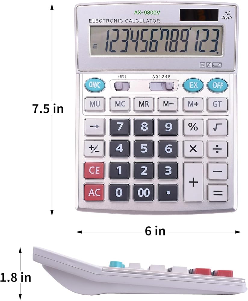 • Size: 7.5*6*1.8inch, large 12-digit lcd display, big 5-inch with clear numbers from any angle
