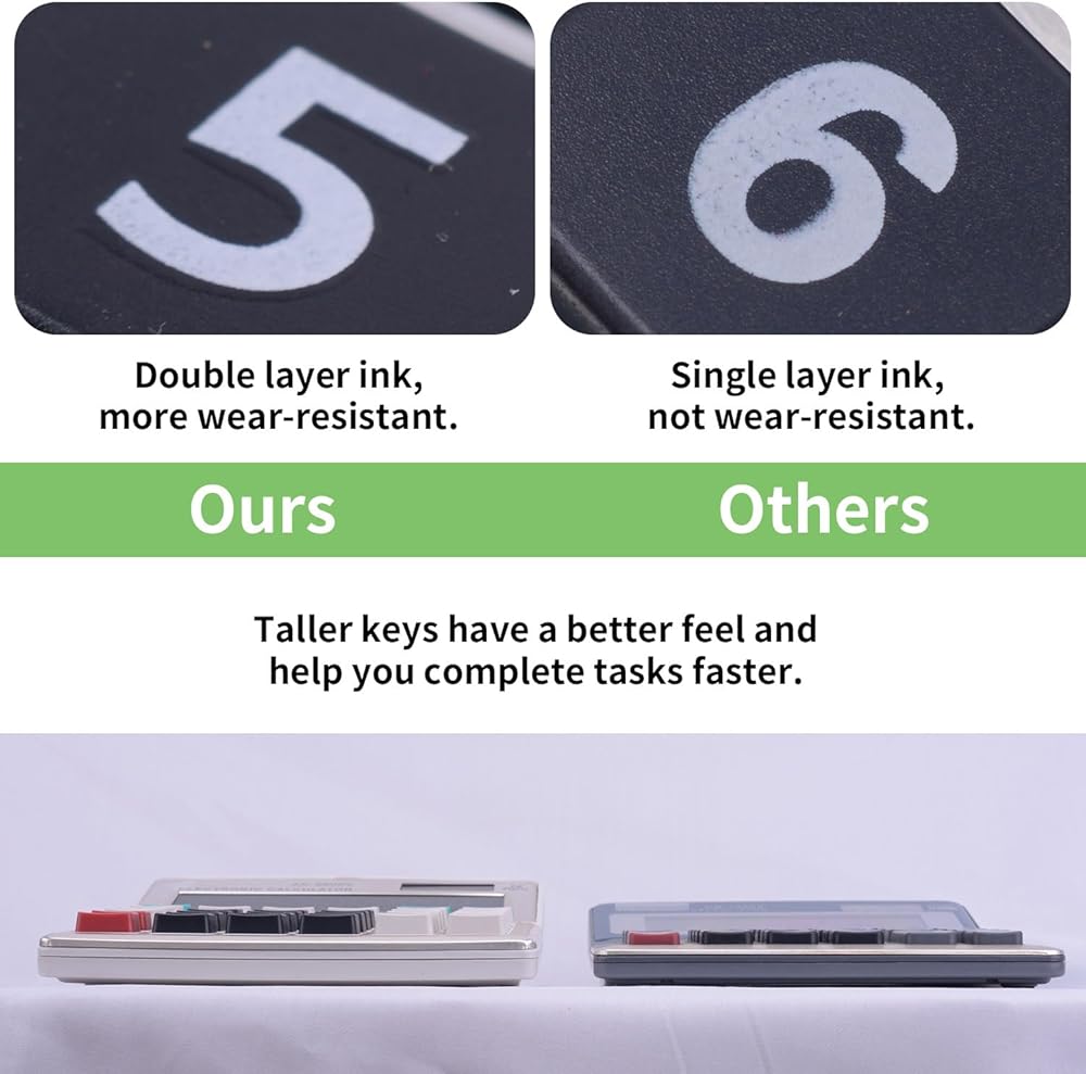 • Two-way Power Basic Calculator: Battery and solar, you can use it in any lighting condition. Also provide one battery