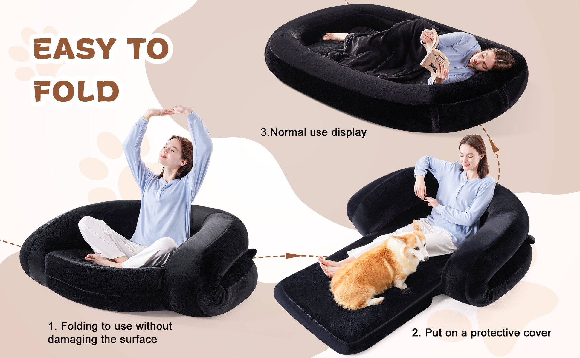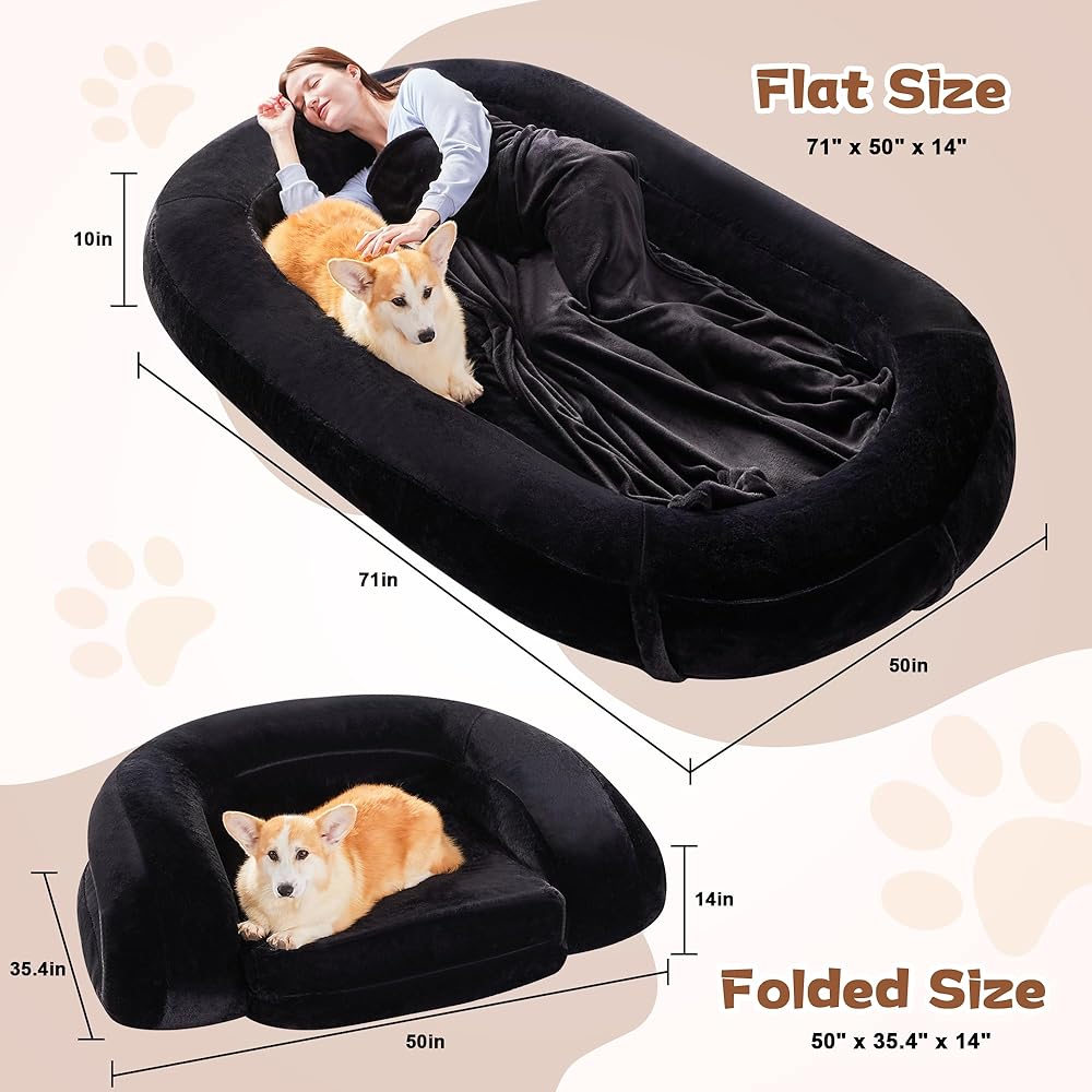 🐶 【تقوية روابطك مع سرير الكلاب البشري】ارفع اتصالك مع صديقك المكسو بالفراء إلى آفاق جديدة مع سرير الكلاب ذو الحجم البشري. هذا السرير المريح ومتعدد الاستخدامات بشكل لا يصدق يسمح لك ولحيوانك الأليف المحبوب بالاحتضان عن كثب، مما يعزز رابطة أعمق ويخلق ملاذًا مريحًا. استمتع بالجوهر الحقيقي للأمان والحميمية كما لم يحدث من قبل. بالإضافة إلى ذلك، يمكن طي سرير الكلب البشري بسهولة على كرسي، مما يضيف وظائف إضافية تناسب احتياجاتك.