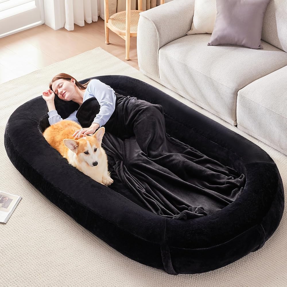 🐶【الراحة والمتانة والتنظيف دون جهد】تم تصميم أسرة الكلاب للبالغين الخاصة بنا لتوفير الراحة. سرير الكلب ذو الحجم البشري قابل للإزالة بسهولة ولا يتطلب أي تركيب. القماش الفاخر مقاوم لحفر الكلاب، مما يضمن المتانة. عندما يحين وقت التنظيف، ما عليك سوى فك سحاب غطاء سرير الكلاب البالغة وإلقائه في الغسالة. يضمن القطن عالي الجودة المعتمد من OEKO-TEX النعومة والحفاظ على الشكل والسلامة.