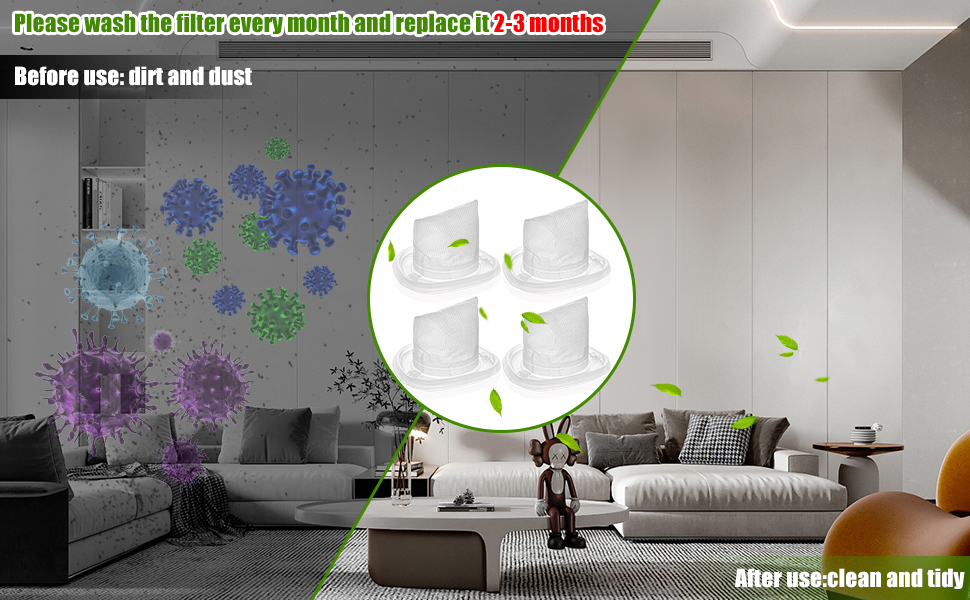 【مادة عالية الجودة】يتكون الفلتر الأسود HNVCF10 من مواد عالية القوة وصديقة للبيئة لضمان أدائه العالي. تتيح لك الاستمتاع بالهواء النقي والنظيف في المنزل/المكتب.