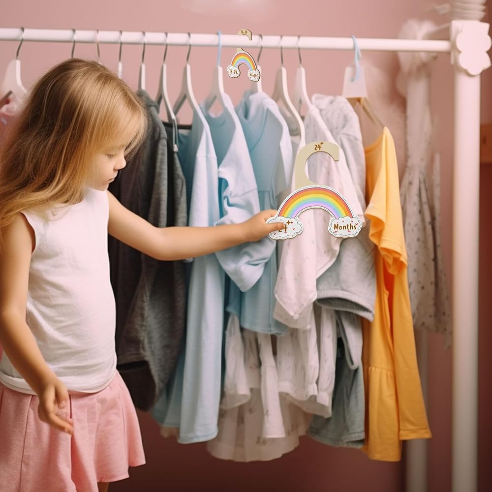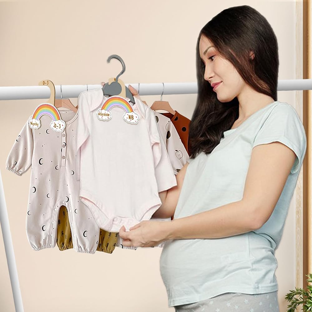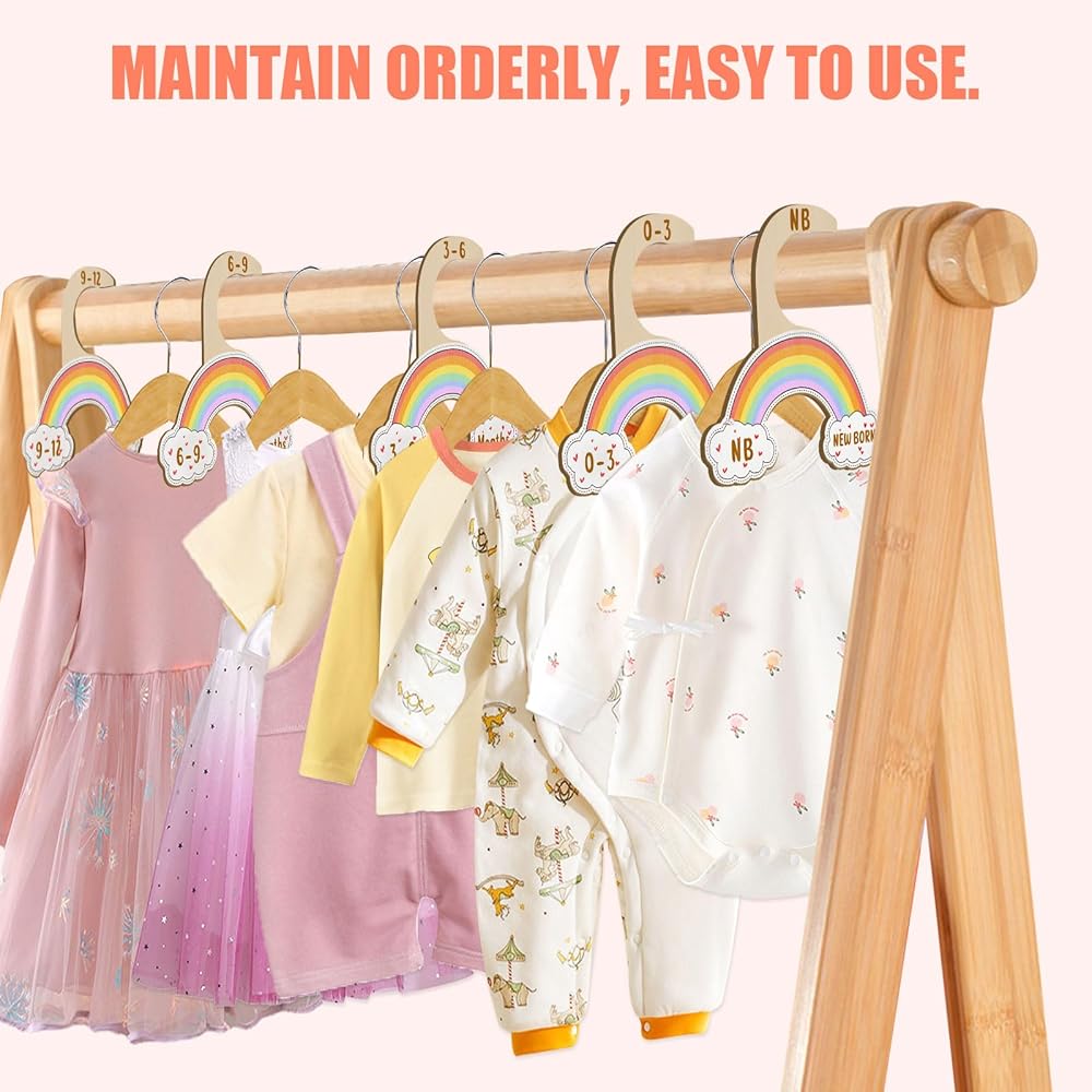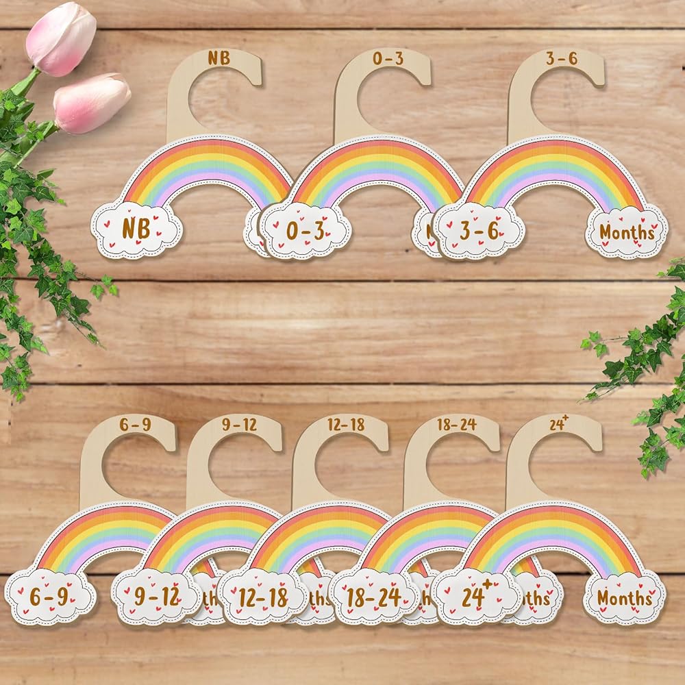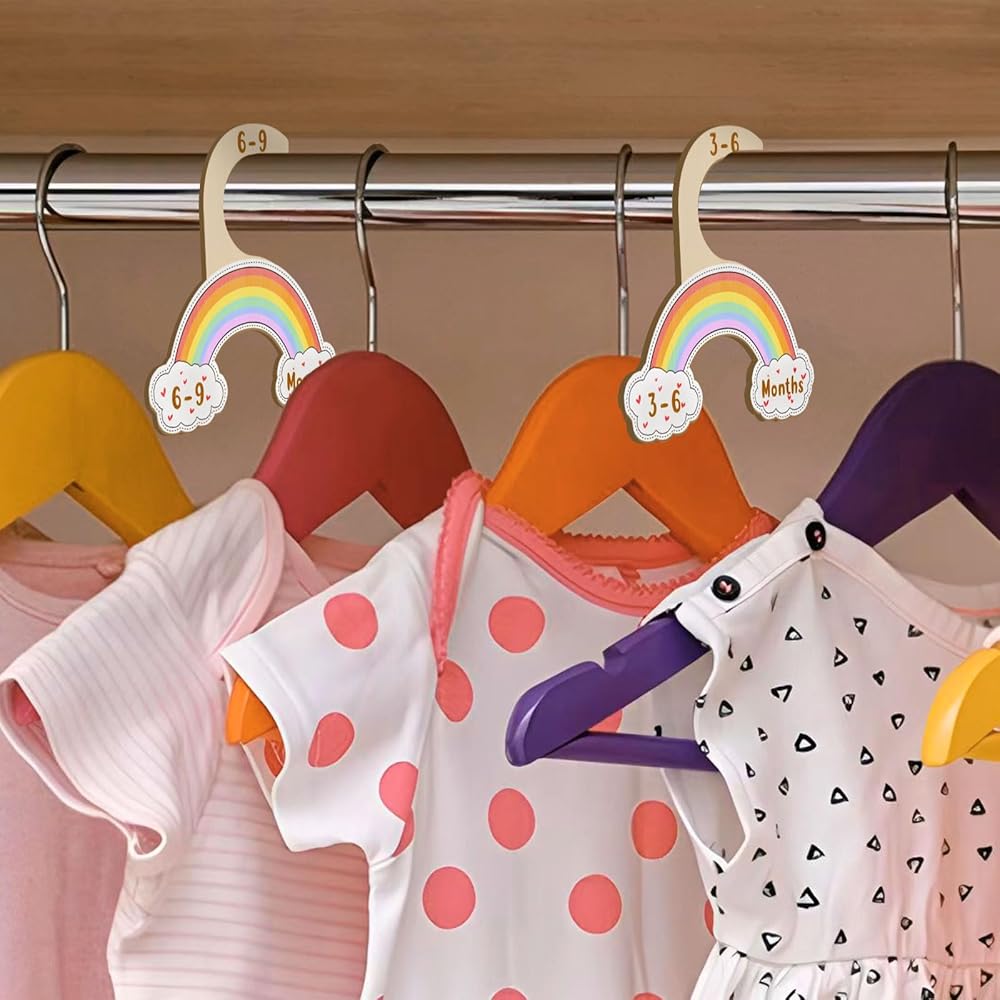 The baby closet dividers make clothes super easy to stay organized,includes 8 dividers for newborn,0-3,3-6,6-9,9-12,12-18,18-24 months and toddler.Not only does it make the baby wardrobe well-organized,but the cute design also adds a touch of elegance to your nursery decor.In addition to being a great organizer,the dividers are also a pretty nursery decor.Each cute baby clothes organizer is double-sided printed,extra-large and modern fonts,also printed at the top of divider to help you see the size you need at a glance.The baby closet dividers is made of smooth and durable wood,hanging directly in the closet for long time use,without scratching clothes,easy to use.Baby clothes organizer is a wonderful gift for all expectant parents,they will love this thoughtful and very useful gift.Perfect for baby boy&baby girl nursery decor.