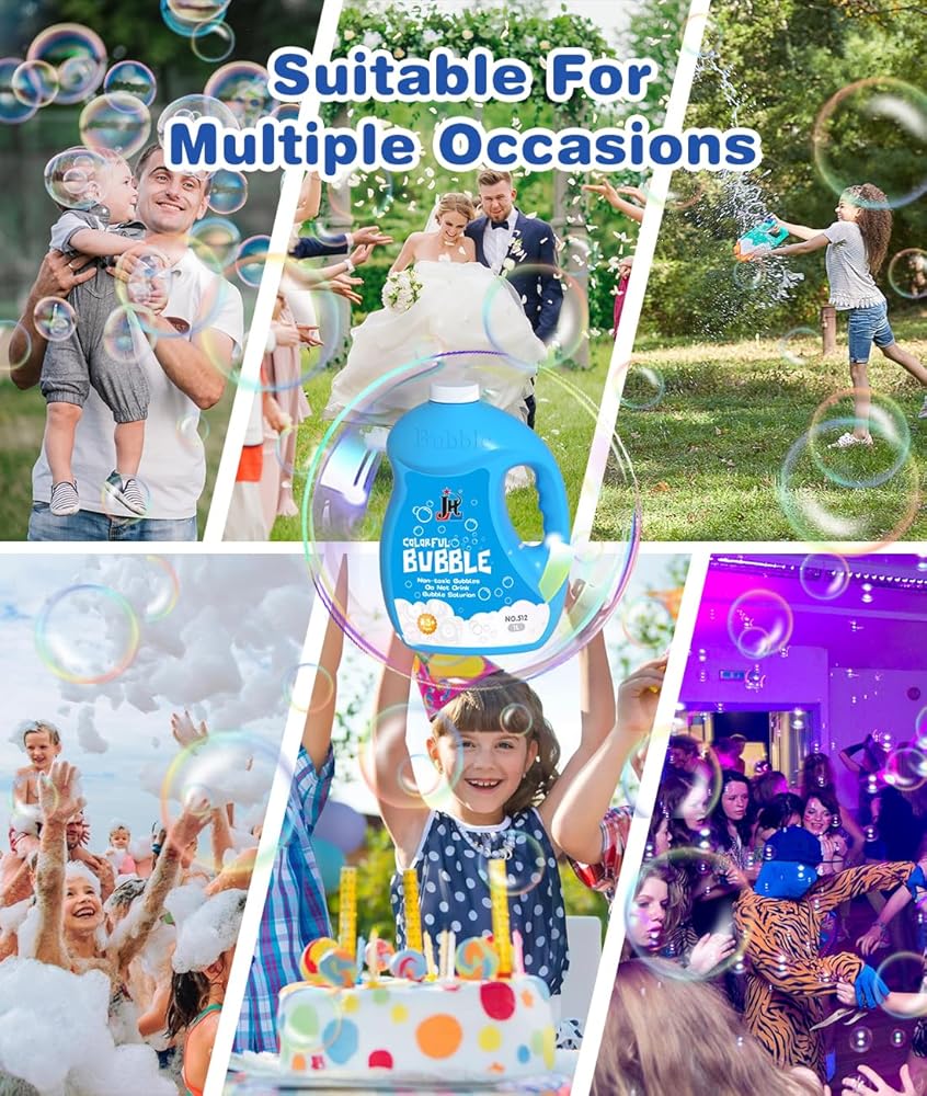 【Great for Outdoor Activities and Events】 - This bubble solution is perfect for large parties or refilling smaller bottles, bubble machines, and toys, making it a must-have for parties. Various bubble machines are perfect tools for outdoor activities, carnivals, prize giveaways, holidays, themed parties, birthdays, camping trips, ceremonies, Halloween, Easter, weddings, anniversaries, family gatherings, prom nights, school classrooms, etc.