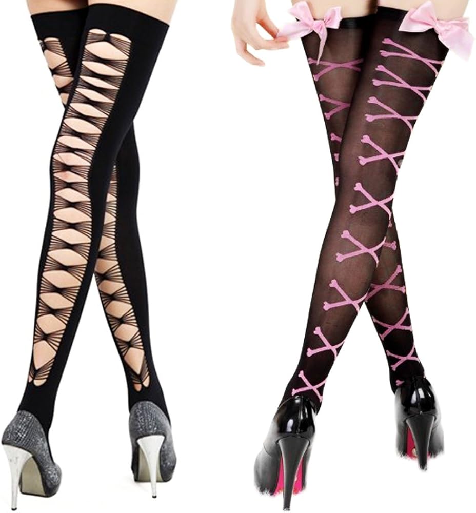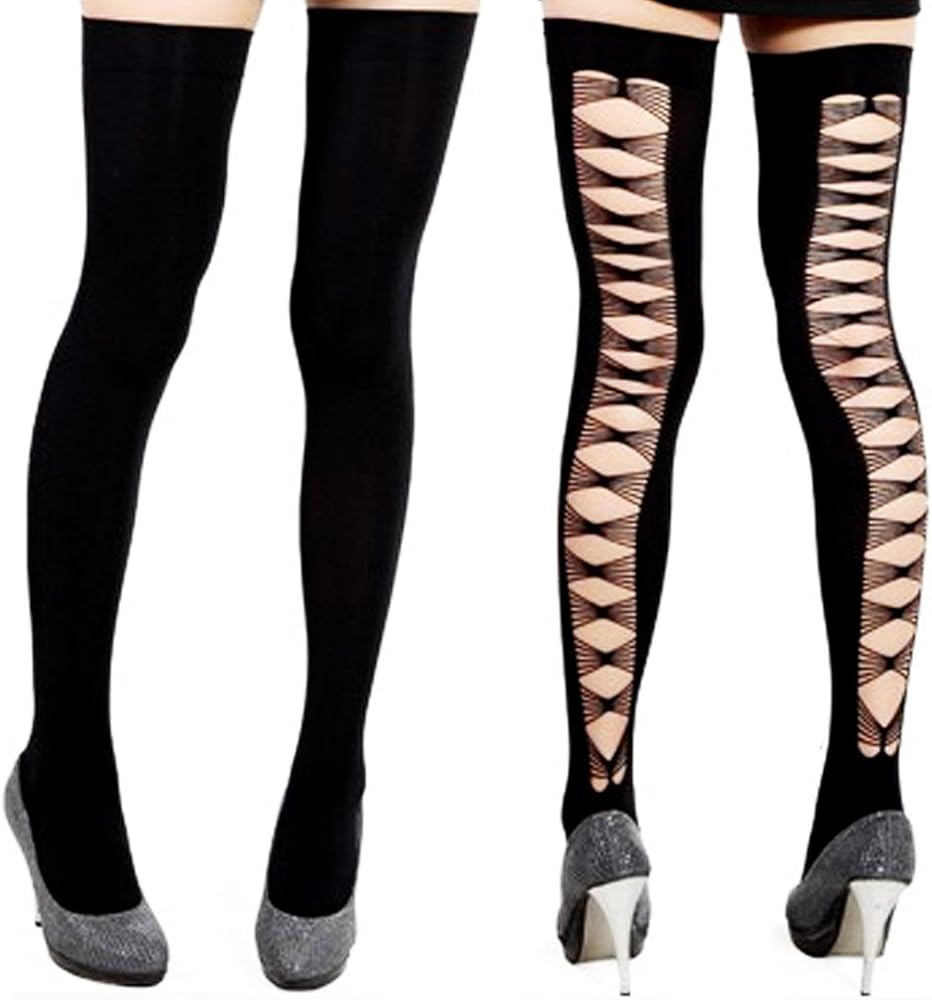مجموعة أربطة الفخذ السوداء من كيلوفلي [مجموعة من زوجين] - ظهر شبكي متقاطع وعقدة فيونكة