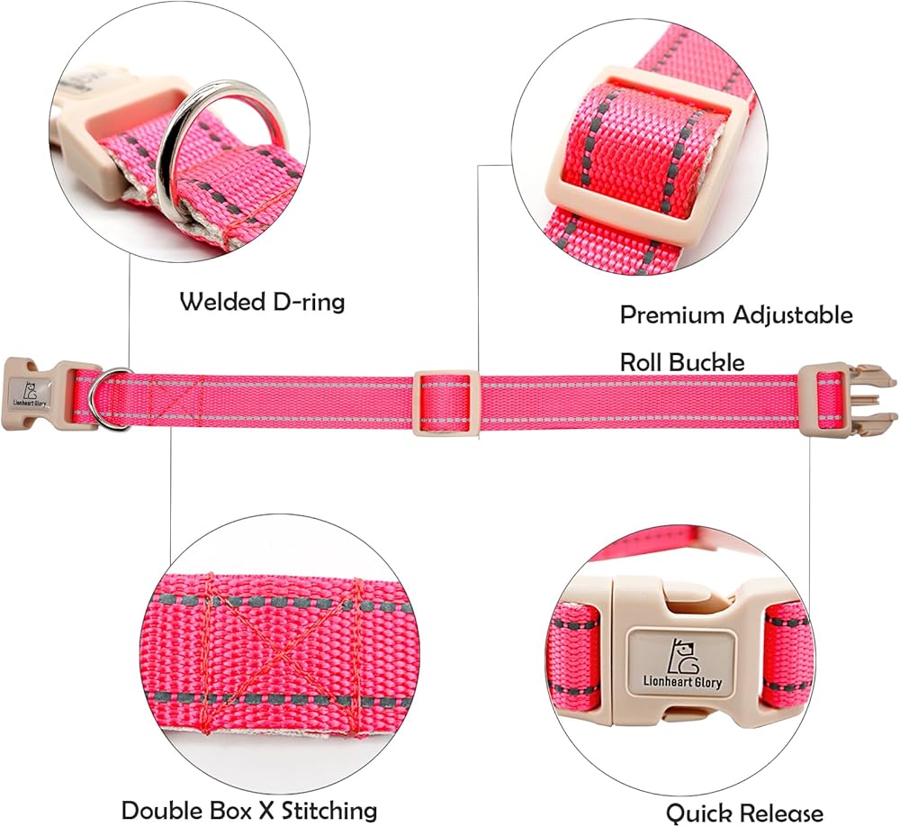مادة فائقة: طوق الكلب العاكس مصنوع من النايلون ليكون متينًا وناعمًا ومرنًا وصلبًا. الجزء الداخلي من الطوق مصنوع من نسيج قطني ليكون أكثر راحة وثباتًا. هذا اللون الكلاسيكي الصلب سيجعل كلبك يبدو أكثر أناقة عند السفر والمشي اليومي. يمكن تعديل طوق الكلب ليناسب جميع أنواع أشكال الكلاب، وهو مثالي للكلاب الصغيرة جدًا والصغيرة والمتوسطة والكبيرة.