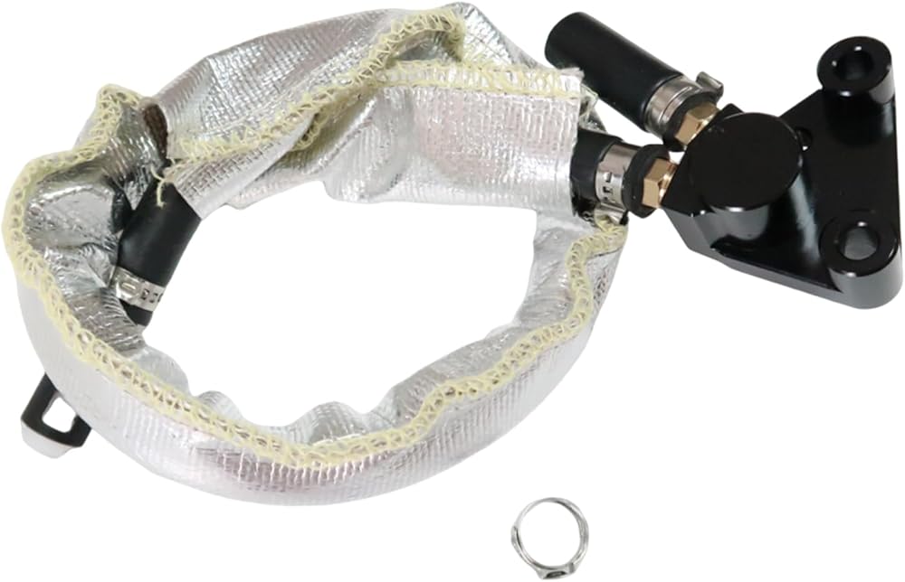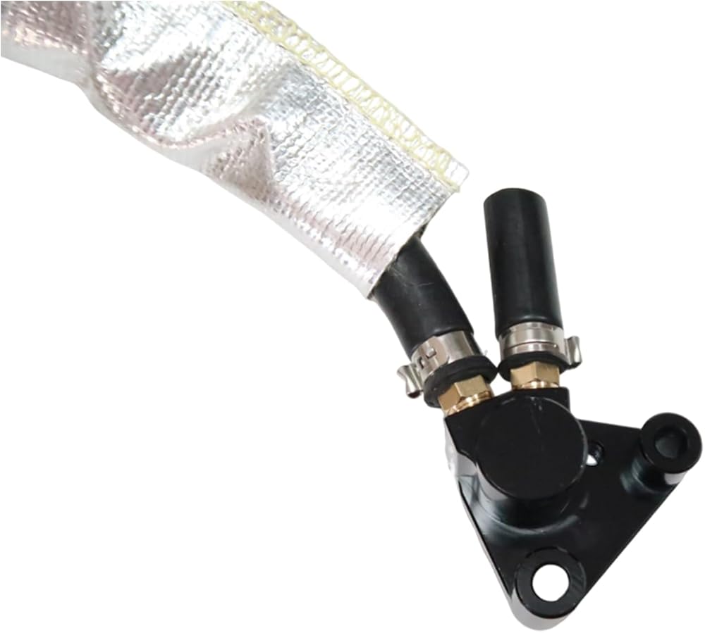 • Core housing is 6061 Aircraft Billet Aluminum with proper brass barbs connected to 5/16" fuel injection hose with gasiola sealant. The quick connect for the fuel rail and DEI fiberglass heat shielding are already installed. The only work on your end is replacing the broken plastic assembly and crimping the stainless steel single ear clamp to your fuel supply.