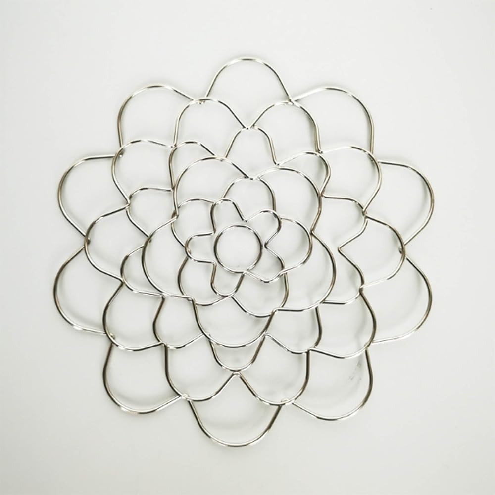 This is a 1Pc Silver Flower Frog Stainless Steel Lid Arranger Lids Metal Insert Floral Round Organizer for Arrangement Plant Fixation. This lid arranger is perfect for the home and office, and it is a creative way to fix the flowerpots. Made of high-quality stainless steel material, this lid arranger is sturdy and durable, and has a smooth surface without any burrs.Can meet your various needs for flower arrangement and plant fixation. The flower frog design can well fix the flower pots and prevent them from falling off, and the metal lid arranger can also be used to store small objects such as paper clips and rubber bands. This lid arranger is suitable for various flowerpots, such as ceramic pots, plastic pots, and cement pots, and it can also be used to decorate the desktop, making your desktop more tidy and beautiful.