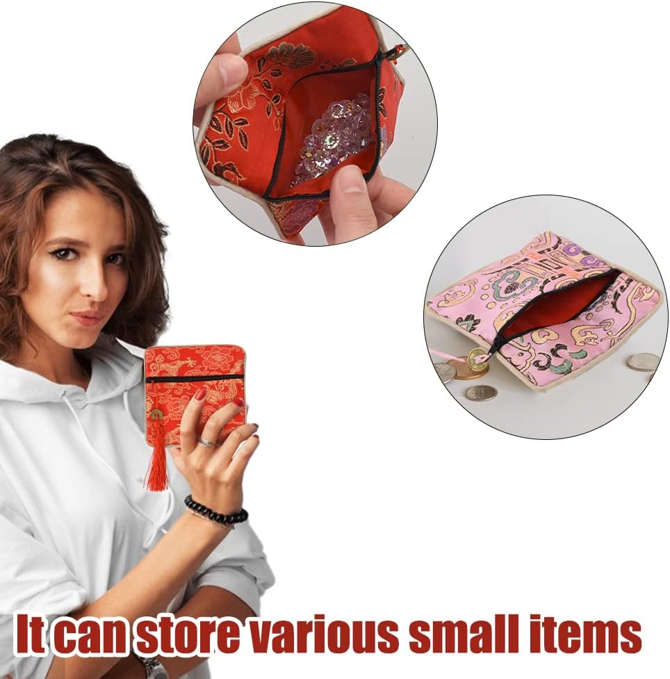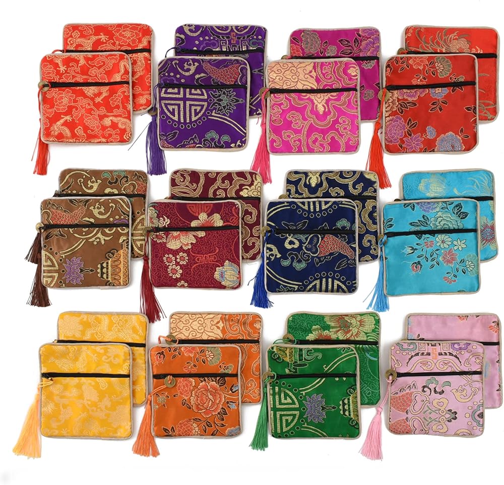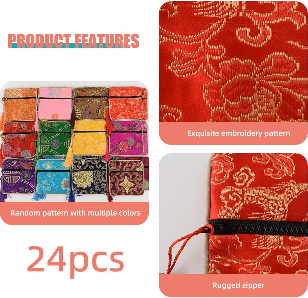VIOCIWUO مجوهرات الحرير محفظة بروكيد حقيبة الحرير سستة حقيبة 24 قطعة مطرزة عملة محفظة مجوهرات الحقيبة المحفظة للنساء الفتيات السنة الجديدة الربيع مهرجان