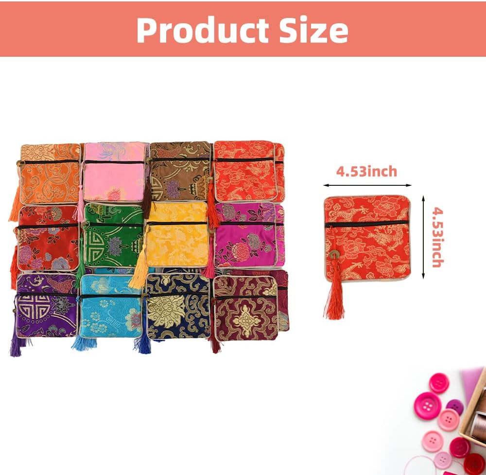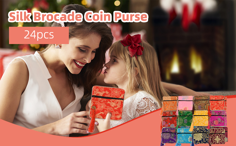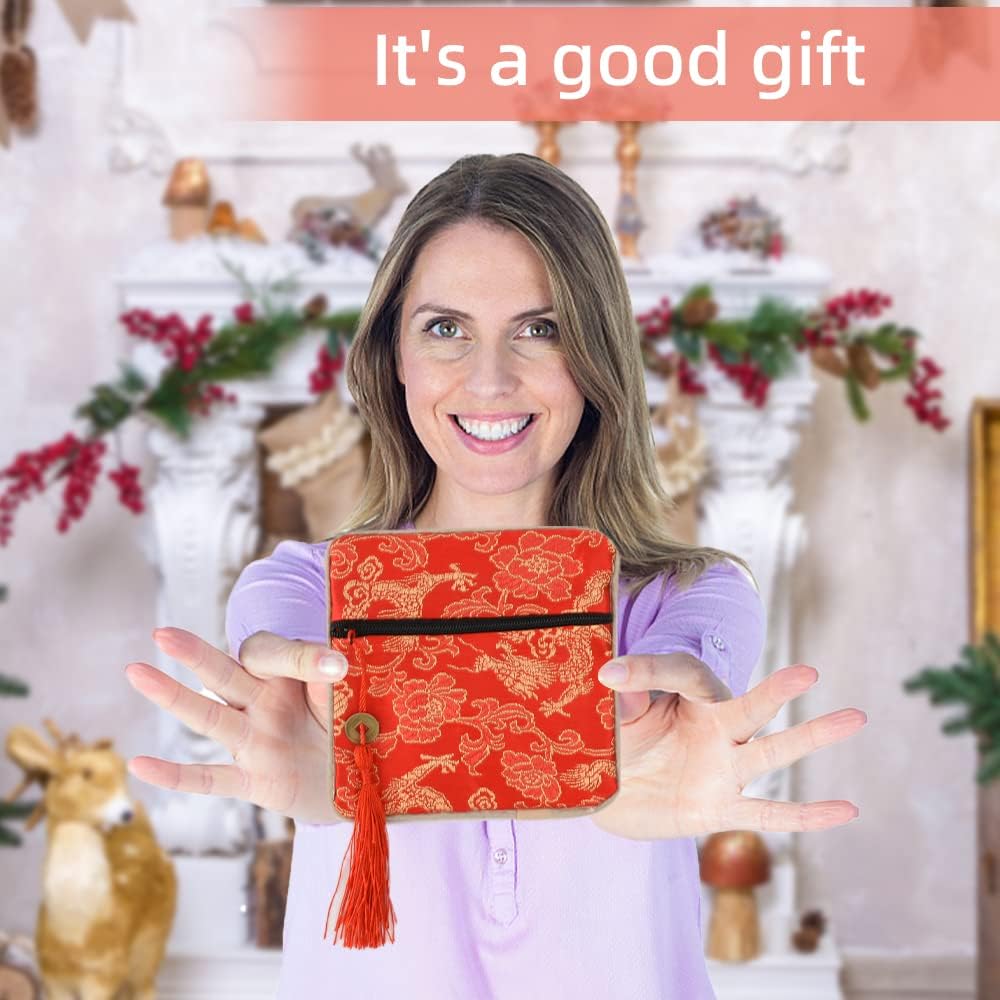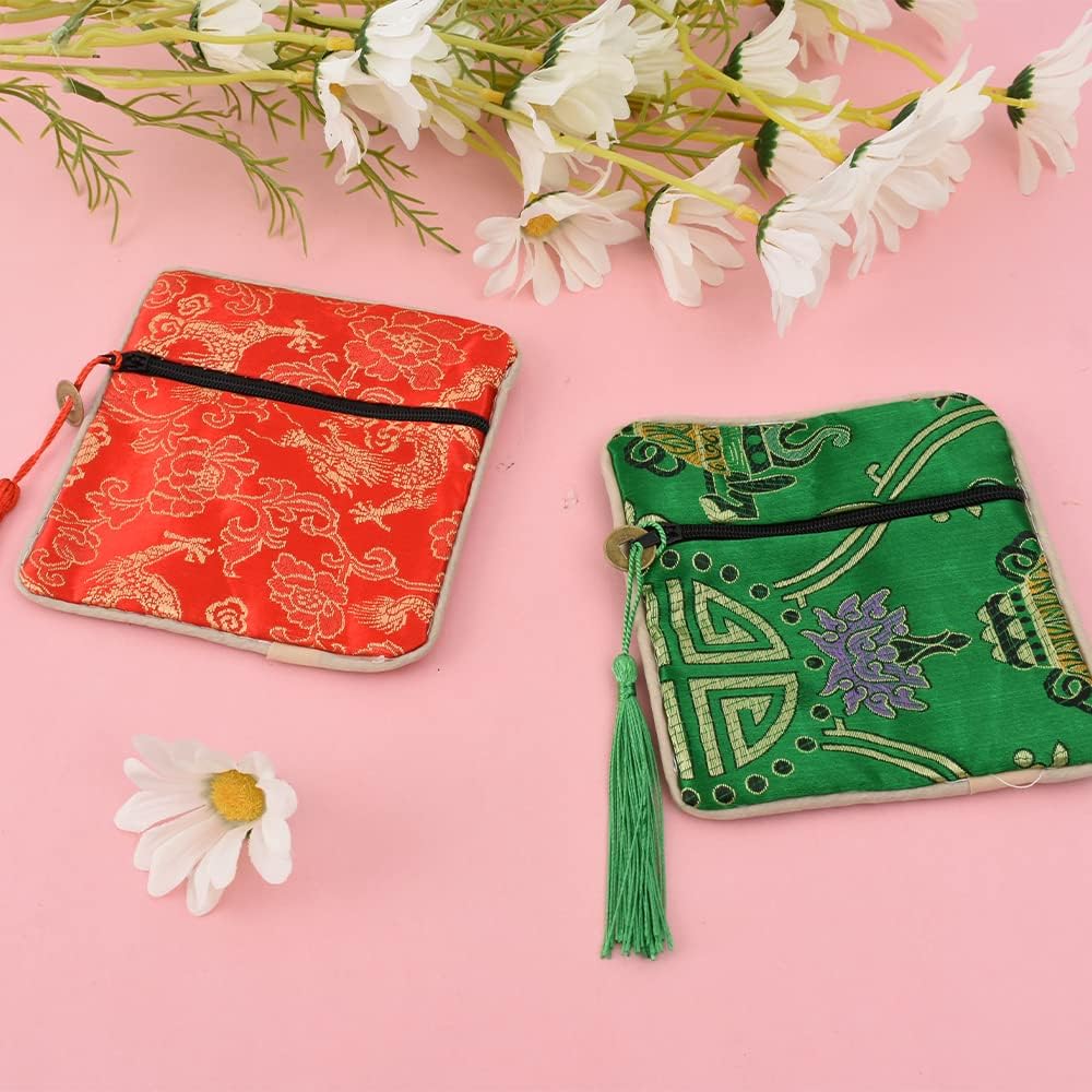 VIOCIWUO مجوهرات الحرير محفظة بروكيد حقيبة الحرير سستة حقيبة 24 قطعة مطرزة عملة محفظة مجوهرات الحقيبة المحفظة للنساء الفتيات السنة الجديدة الربيع مهرجان