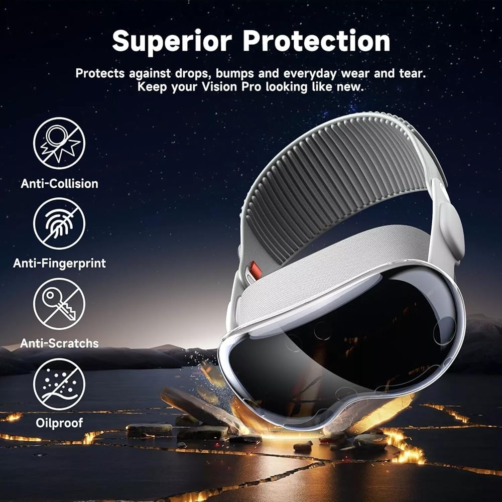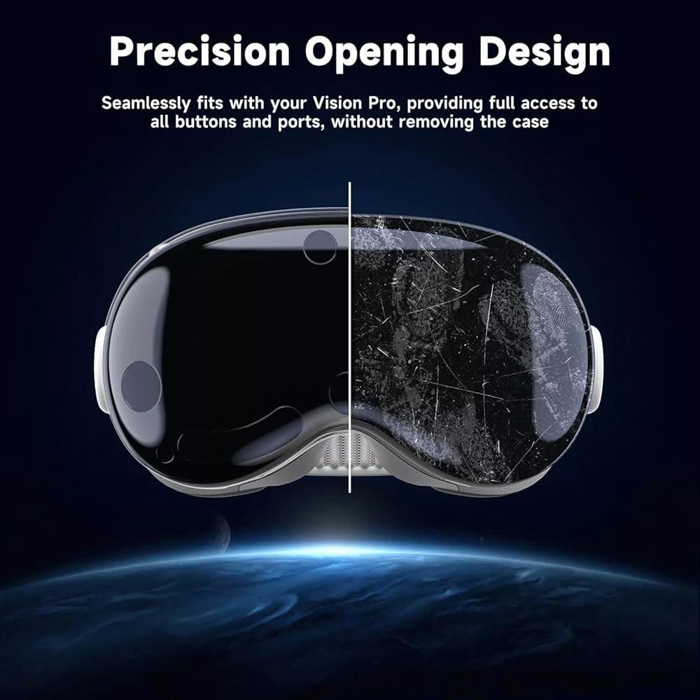 Compatibility: Specifically crafted for Vision Pro, our protective case seamlessly fits your device. Effective Protection: The one-piece TPU case effectively prevents collisions and scratches to the headset and keeps your device in pristine condition. User-friendly Design: Lightweight and comfortable, reduce the weight on your head, and prevent fatigue even after long hours of wear. Crystal Clear Transparency: Our case features a minimalist aesthetic that amplifies the sophisticated silhouette of your Vision Pro without adding bulk. Perfect Fit: Precise cutouts ensure full port access and audio output.