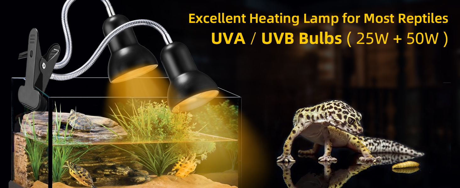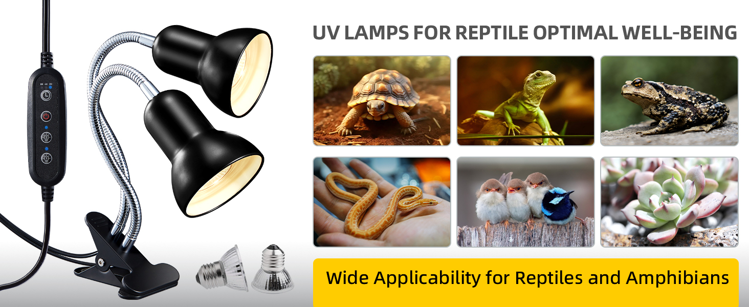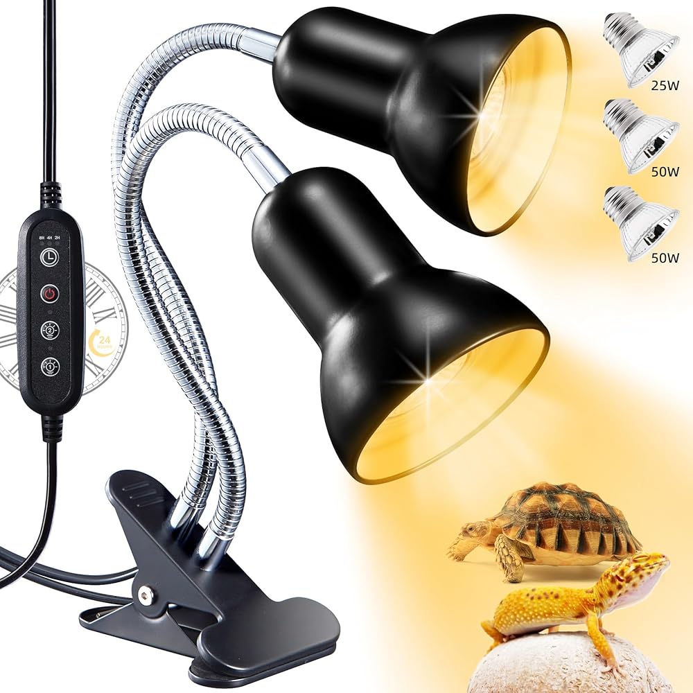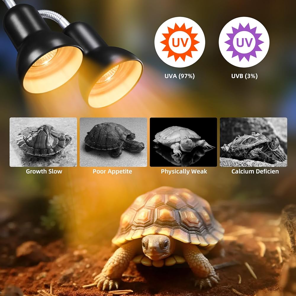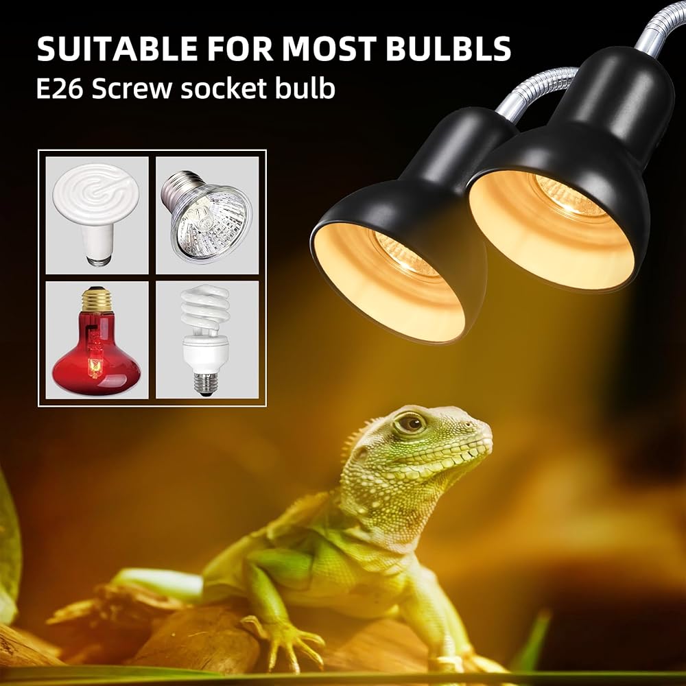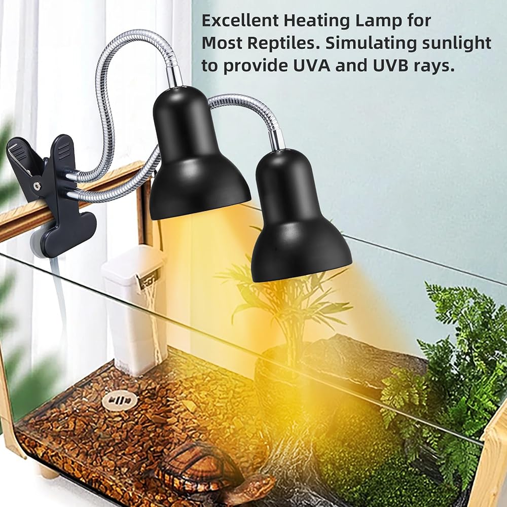 مصباح حراري للزواحف مزدوج الرأس: قم بإلقاء الضوء على موطن الزواحف الخاص بك من خلال تصميمنا المتطور ثنائي الرأس، مما يوفر توزيعًا مثاليًا للحرارة لرفاقك من ذوي الدم البارد.