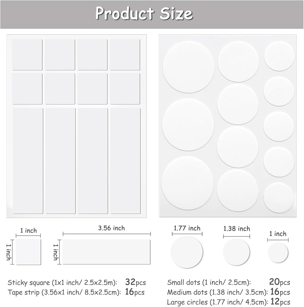 • You will get 48pcs circle dots in3 sizes, 16pcs rectangle putty and 32pcs square tape, total in 96pcs. Fits your wide and endless scope of application.