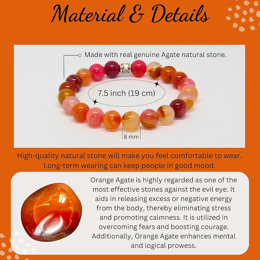 اكتشف الفوائد المذهلة لحجر العقيق البرتقالي: يشتهر العقيق البرتقالي بأنه أحد أفضل الحماية ضد العين الشريرة، وهو بمثابة درع قوي. فهو يساعد على إطلاق الطاقة الزائدة أو السلبية من الجسم، وتعزيز الهدوء وتخفيف التوتر. يشتهر العقيق البرتقالي بقدرته على تبديد الخوف، فهو يعزز الشجاعة والثبات. بالإضافة إلى ذلك، فهو يعزز الوضوح العقلي ويشحذ التفكير المنطقي، مما يمكّنك من مواجهة تحديات الحياة بثقة ووضوح.
