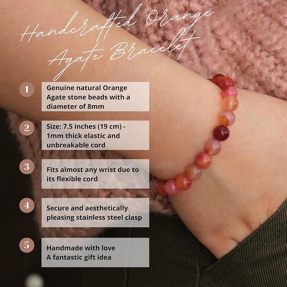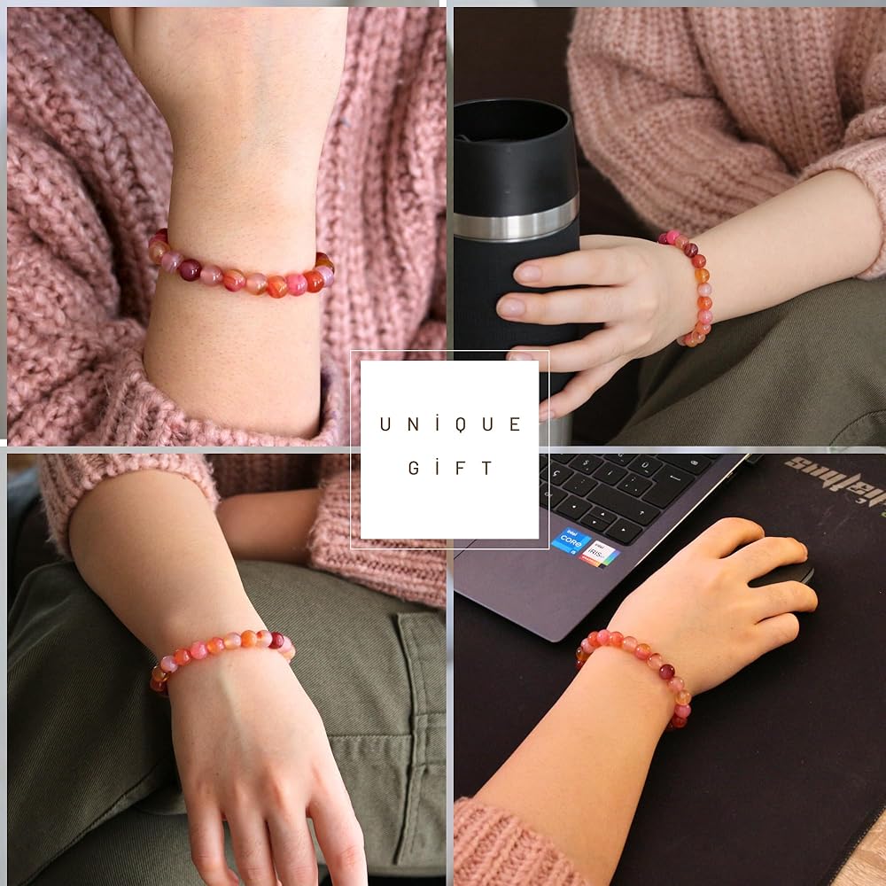 أساور للنساء: انغمس في سوارنا الرائع، المصنوع بدقة من خرز الحجر الطبيعي مقاس 8 مم يدويًا. بطول 7.5 بوصة (19 سم)، يتكيف بسهولة ليناسب أي حجم معصم، مما يضمن إكسسوارًا مريحًا وأنيقًا للجميع. يتم اختيار كل خرزة بعناية لجودتها وجمالها، لتقدم قطعة خالدة تنضح بالأناقة والسحر. ارتقي بمظهرك مع هذا السوار المذهل، المصمم ليكمل أي زي أو مناسبة بفضل جاذبيته المتنوعة والأنيقة.
