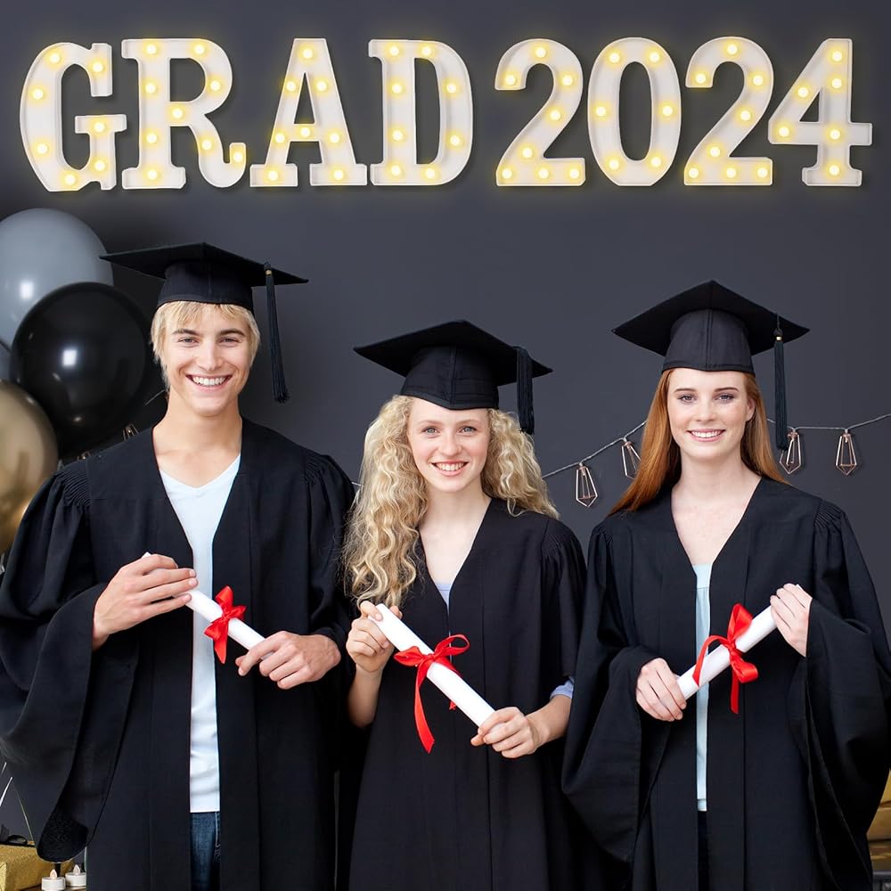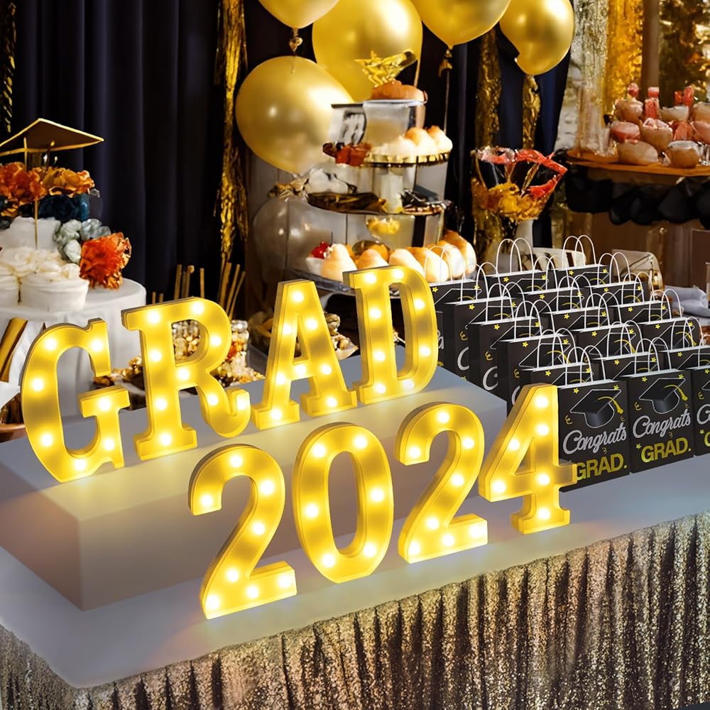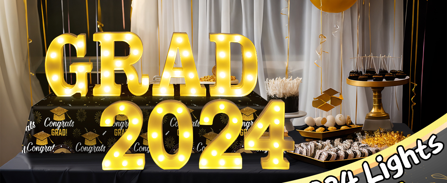 • زينة تخرج عالية الجودة - ضوء الحروف مصنوع من البلاستيك، لن يسخن بعد الاستخدام لفترة طويلة. اجعل حفل التخرج لعام 2024 الخاص بك أفضل ما يمكن أن يكون مع هذه اللوازم والديكورات