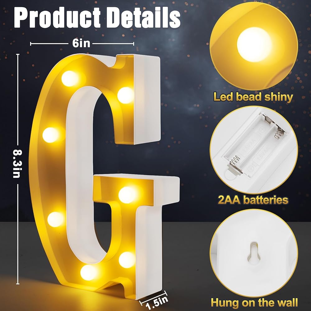• ديكورات رائعة لحفلات التخرج - حجم كل حرف هو 6.35 × 1.5 × 8.6 بوصة. لا تحتاج إلى توصيلها بمنفذ كهربائي، فقط تحتاج إلى بطاريتين AA (غير متضمنتين)، وسوف تضيء الحفلة بها.