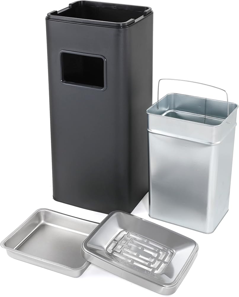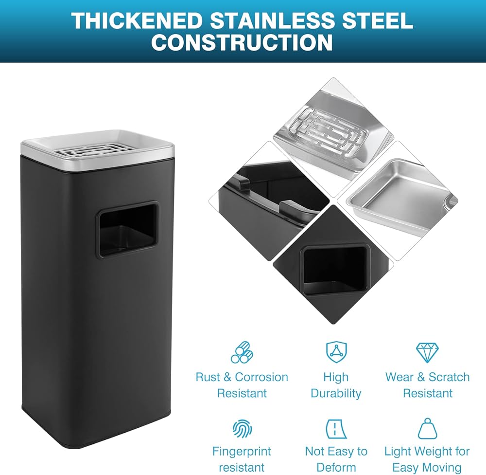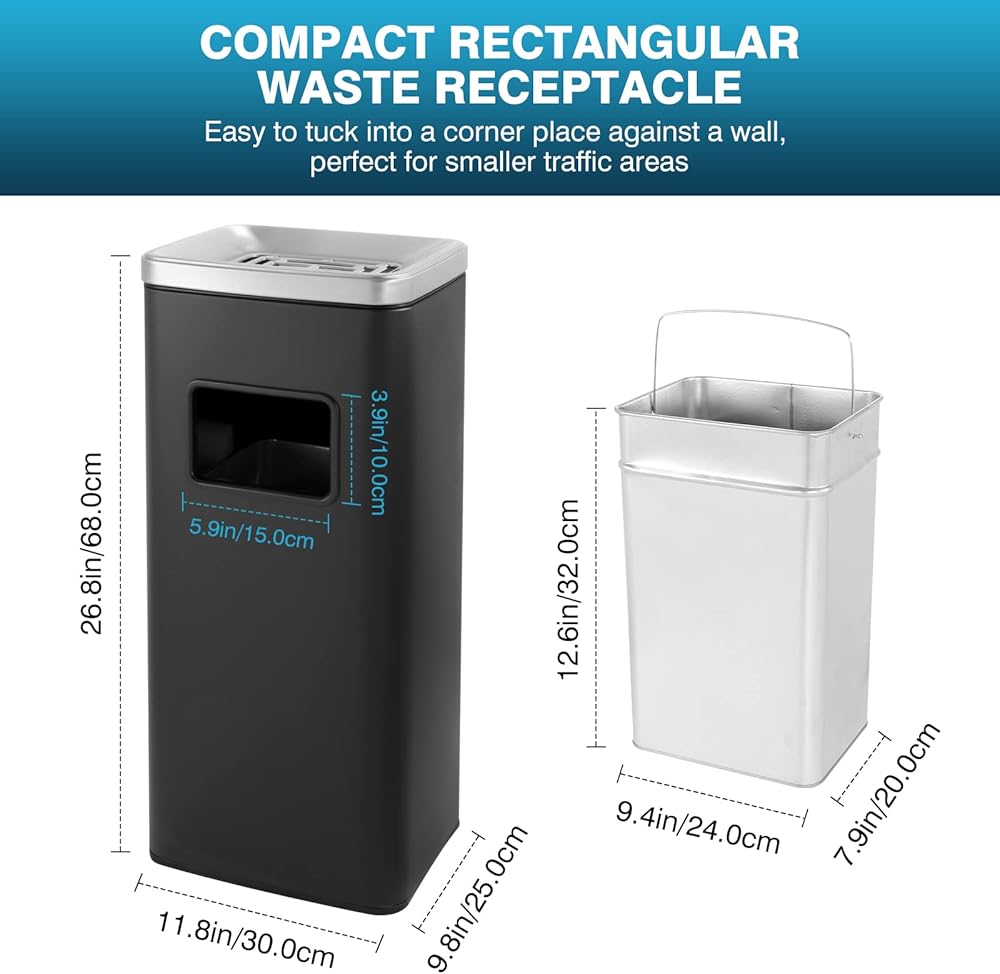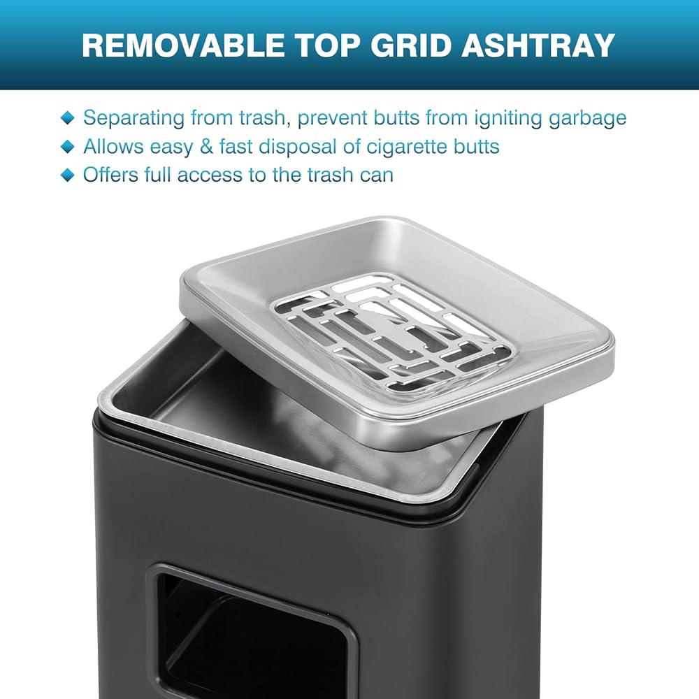 【سلة مهملات تجارية عملية】تؤدي سلة المهملات ذات الغطاء وظيفة مزدوجة كجرة رماد ووعاء للنفايات، مما يوفر التخلص السريع والسهل من السجائر والقمامة في مكان واحد. ويمكن لهذه القمامة الصناعية أن تفصل أعقاب السجائر عن القمامة، مما يوفر الوقاية الفعالة من الحرائق.