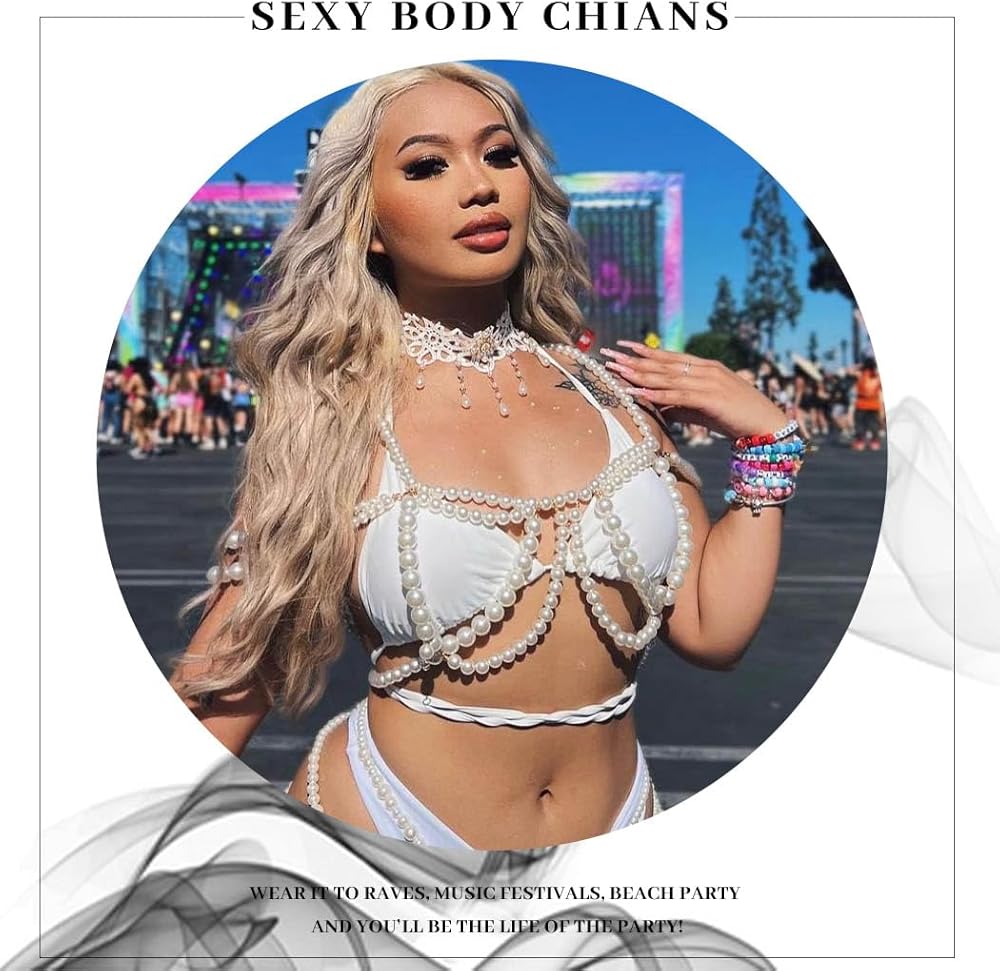 Pearl body chain are made pearl and alloy, pearl is not easy to fade, the chain is not allergic, and it will not feel uncomfortable when worn for a long time.