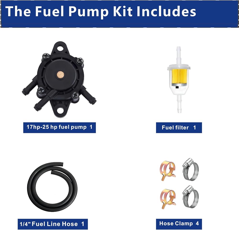 • 【Briggs fuel pump 799056 Kit】 This Fuel Pump allows you to have 1 oil pump, 1 filter, 1 NBR Fuel Line Hose, 2 Secure the fuel line clamp 2 Elastic Hose Clamps;Vacuum Fuel Pump with Fuel Filter for Kohler 17HP-25 HP Briggs and Stratton J&Deere Honda Yamaha Small Engine Lawn Mower Tractor,and All Club Car DS & Precedent Gas Carts from 1985 to present, CLUB CAR FE290 & FE350 Kawasaki Engines.