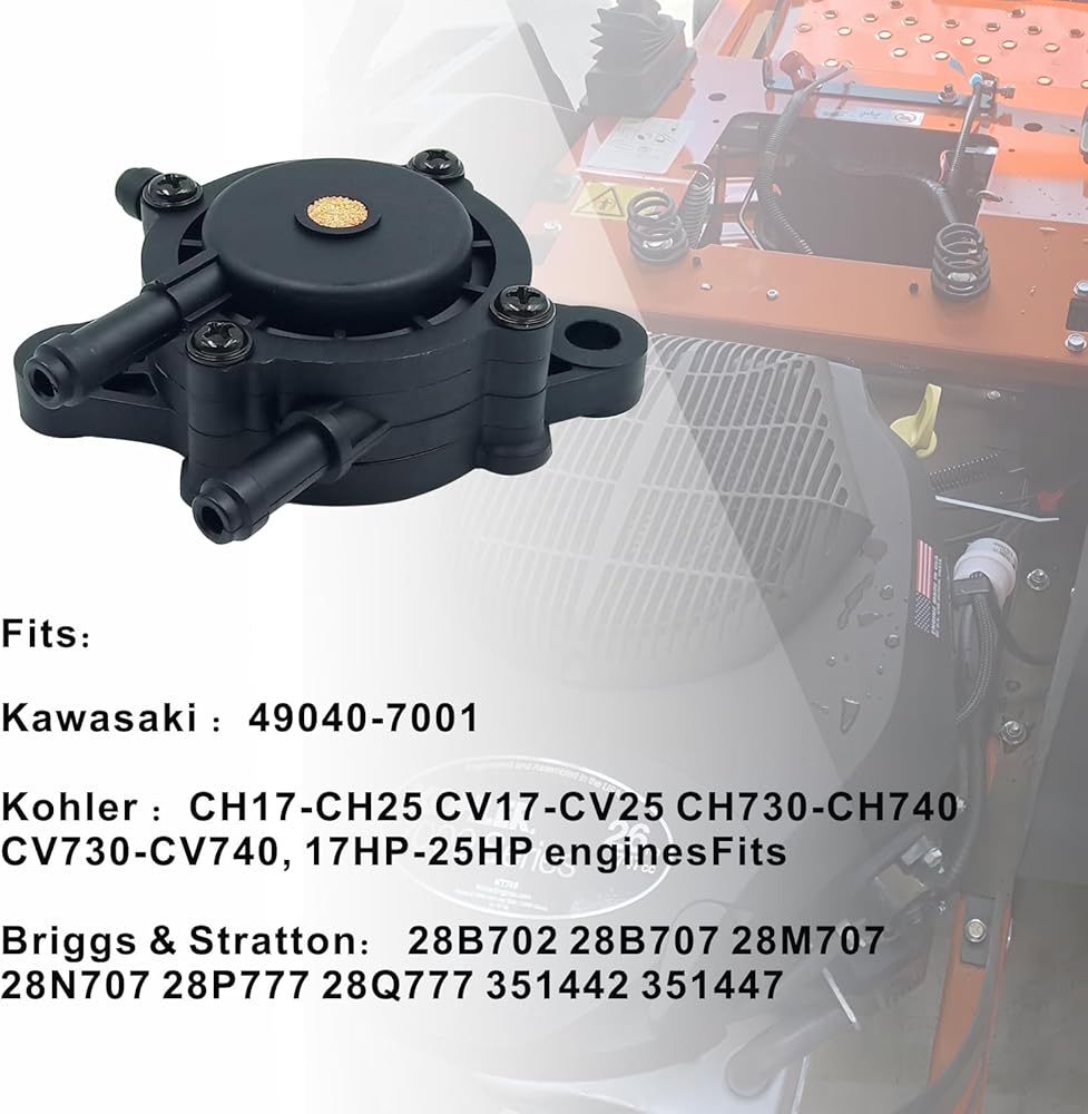 • 【597338 Briggs Fuel Pump Compatible Model】kohler 26hp 747cc 7000 series fuel pump Replace for 491922 691034 692313 808492 808656, J& Deere LG808656, M138498, M145667, Kawasaki 49040-7001, Yamaha G16 - G19 & G20 & G22 & G29、john deere lt166 fuel pump.