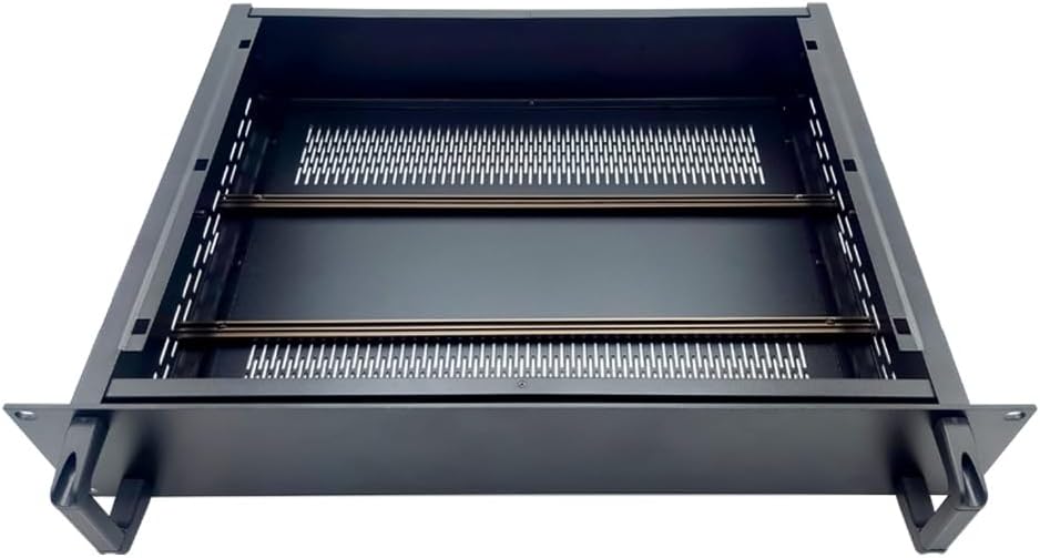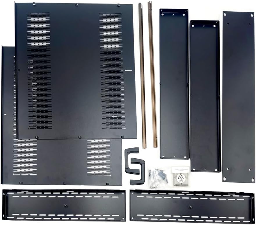 (Pf-19 inches )19 inches Rack 2U-D2 Aluminum mountable multipurpose DIY enclosure high quality. Features : Light weight and strongVery durable all aluminum (AL 5052) constructionEasy to assembleExtensive top / bottom and side / side ventilationInner front panel for component mounting allows outer front panel to remain clean appearance Open Frame design maximizes user convenience for component assemblyTwo pieces of extruded aluminum general purpose bars for components fixing are included in the basic. Additional bars may be ordered as needed.Optional mounting plates for PCB and heavy components such as transformers Optional solid side covers for air flow control or decorative look in non 19 inches rack mounted applicationsHeavy duty handles19 inches rack mounted or standing Flat pack for efficient storage and shippingStandards and Materials : Dimensions conform to IEC-60 297-3. grade (AL 5052) aluminum. Designed and manufactured under ISO 9001 : 2015 and ISO 14001 : 2015All materials RoHS compliant.Dimension : Front Panel Size (mm.) : Width 482.60 mm. x Height 132.6 mm. x Thickness 3.00 mm.Cabinet Size (mm.) : Width 425 mm. x Height 127.6 mm. x Long 335 mm.Handle Height (mm.) : 90 mm.Part List : Vented Side Panel x 2Inside Tooth Washer M5 x 1Inside front rear panel x 2Top Bottom Cover x 2 Nut M5 (Standard) x 2Component Mounting Bar x 2Umbrella Phillips Screw M3-6 Blk. x 16 Front Panel x 1Handle x 2Spring Washer M5 x 4Umbrella Philips Screw M5-12 Blk. x 4Rubber Feet x 4