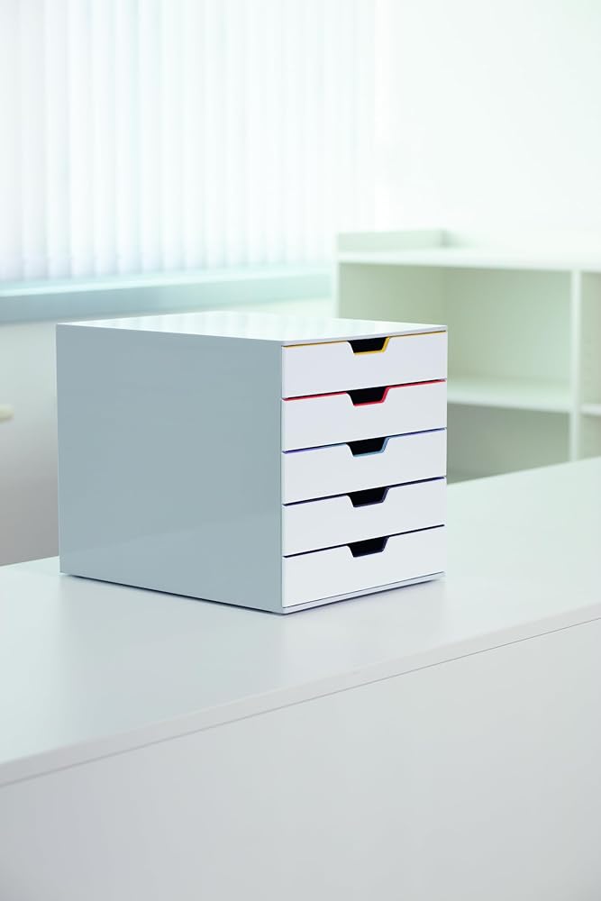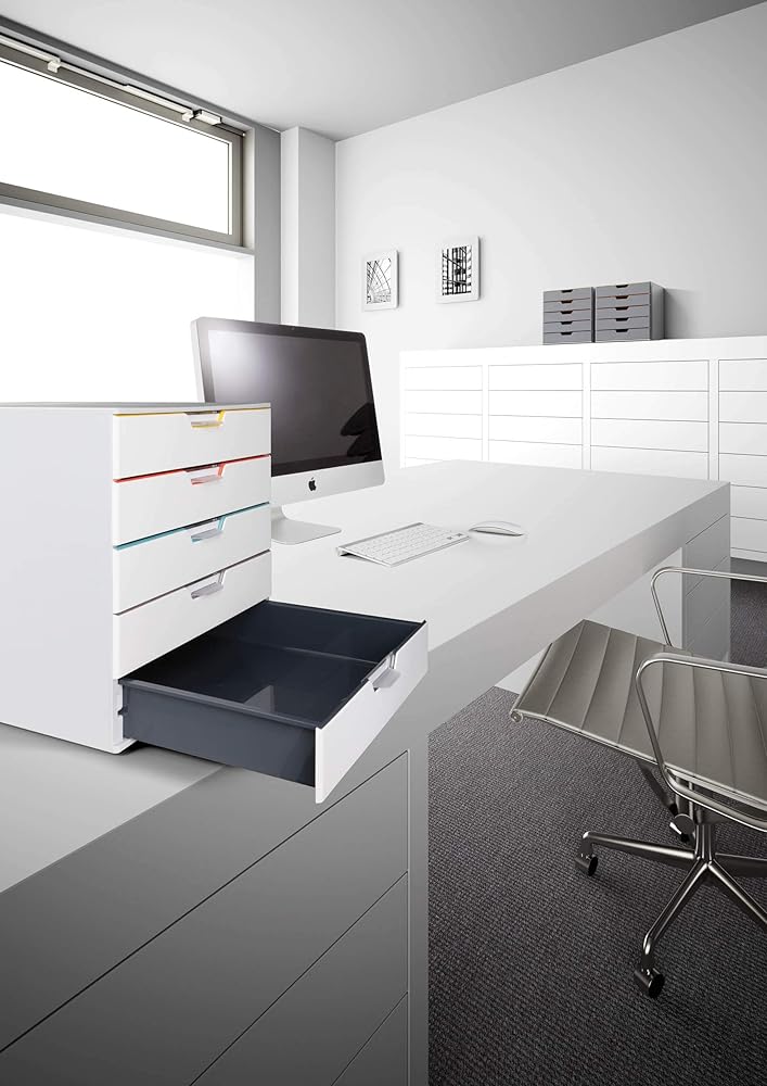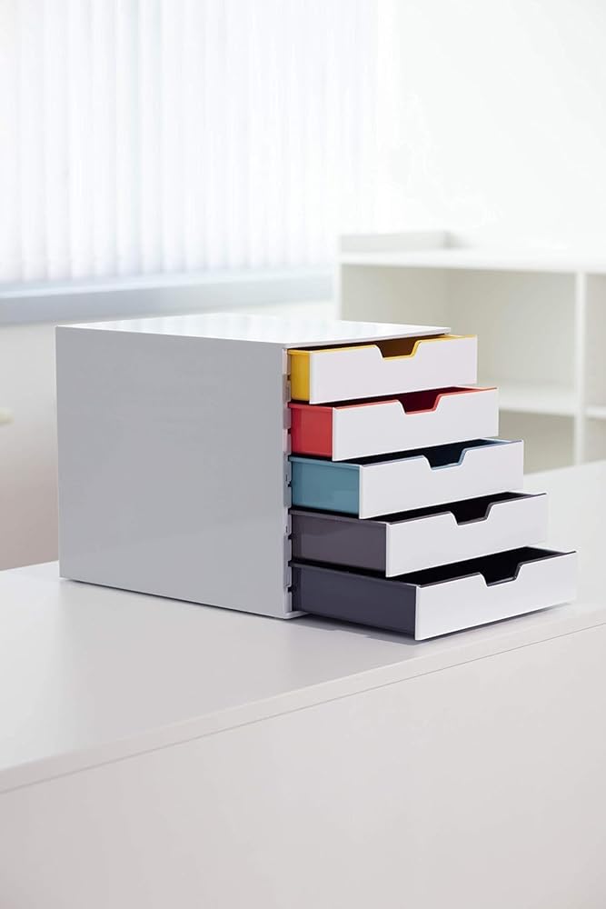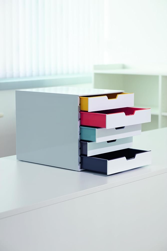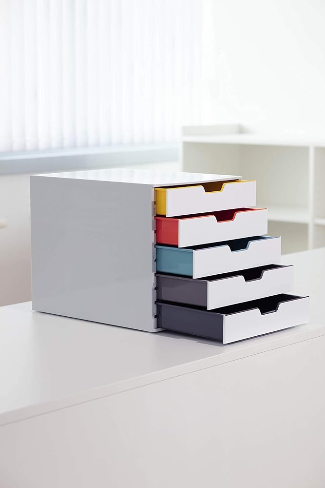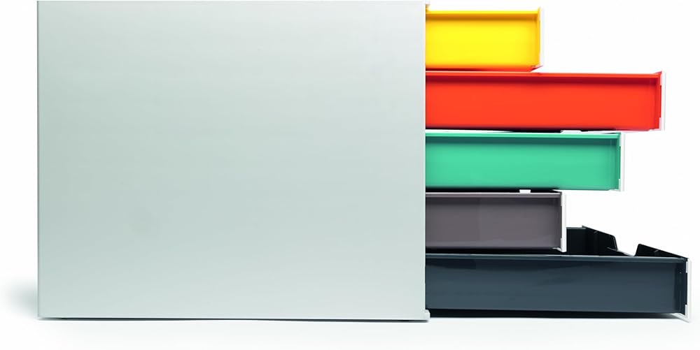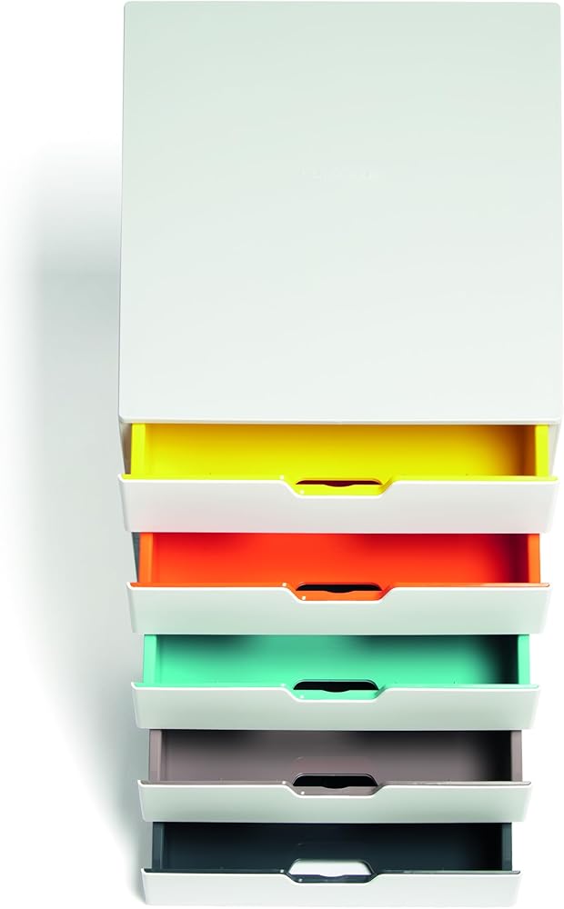 - Attractive, innovative drawer box with ten colorful drawers made of premium-quality plastics - Each drawer is color coded to aid document organization - Drawer stops enable smooth and soundless opening - Stackable, with skid proof plastic feet - They fit into all standard office cabinets and sideboards when placed side by side - Comes with transparent labeling windows and EDP-printable, easy-to-exchange label inserts - For letter-size documents - 11-1/2" w x 14" d x 11" h