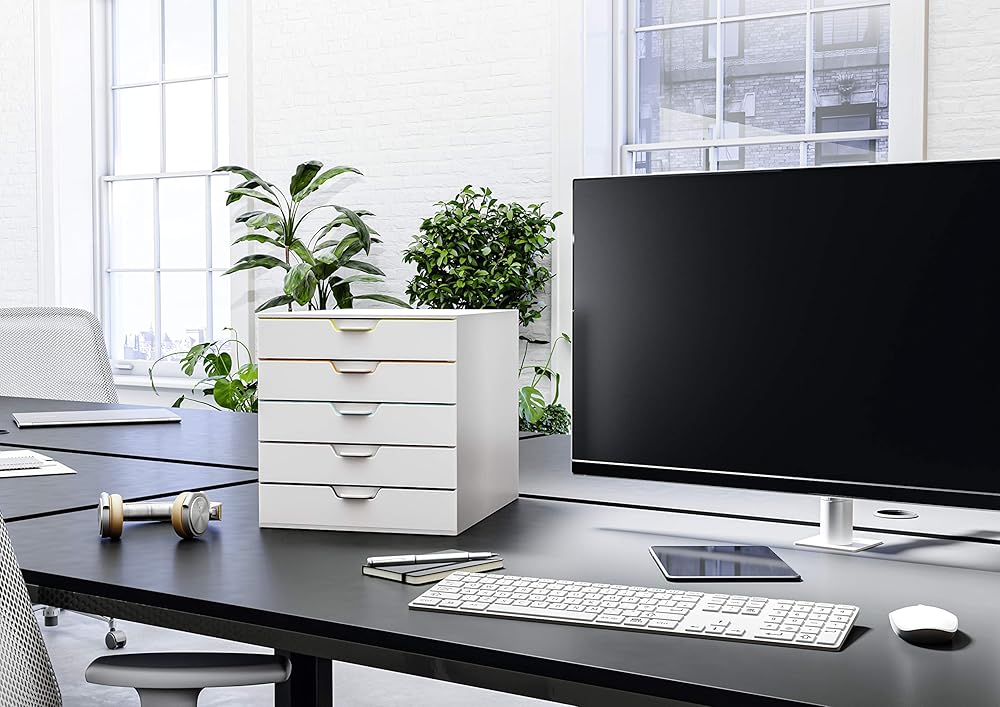 STYLISH, innovative letter-size drawer box with 10 colorful drawers made of premium materials (11" w x 14" d x 11. 375" h)