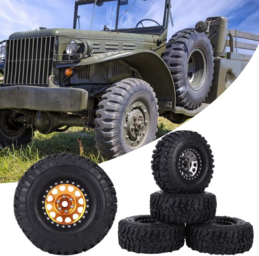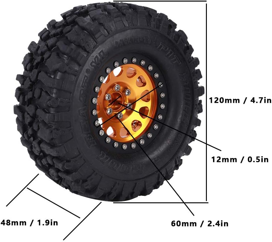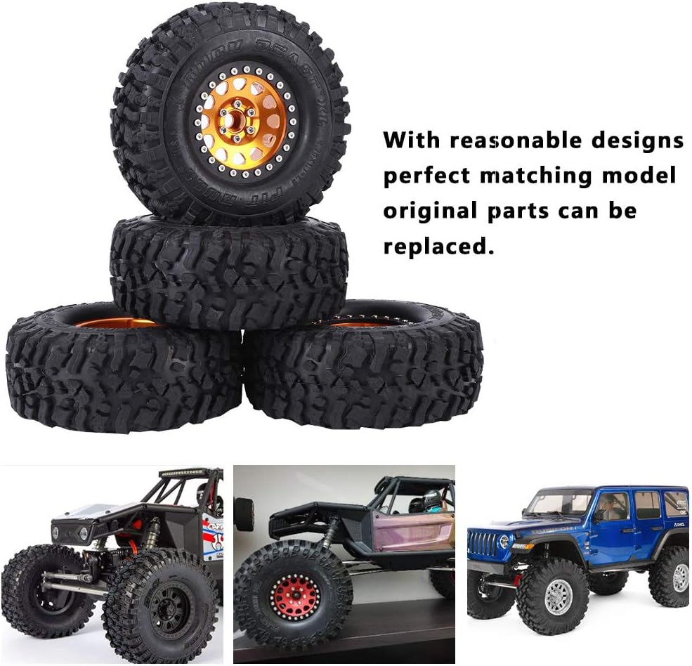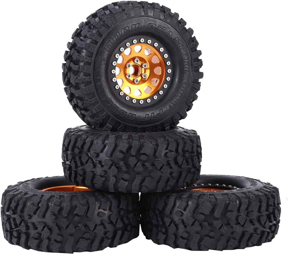 عجلات وإطارات RiToEasysports مقاس 1.9 بوصة من Beadlock، 4 قطع من المطاط الزاحف العالمي لإطارات السيارة RC محور عجلات معدني، عجلات Beadlock مقاس 1.9 بوصة مع محور (ذهبي)