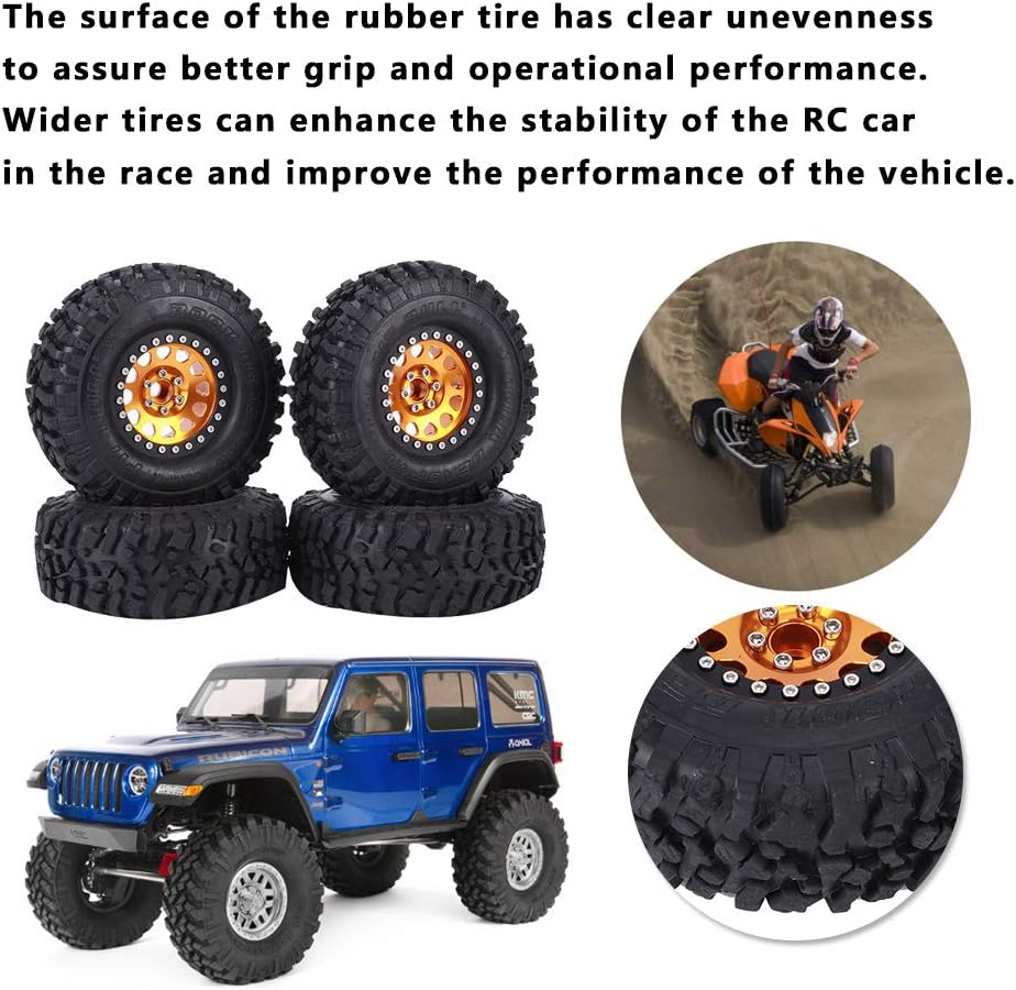 قبضة رائعة: يتميز سطح إطارات العجلات RC بتفاوت واضح لضمان قبضة أفضل وأداء تشغيلي، كما أنه يتميز بتخميد قوي، ويمكن أن يخفف بشكل فعال من اهتزاز جسم السيارة الناتج عن الطرق الوعرة.