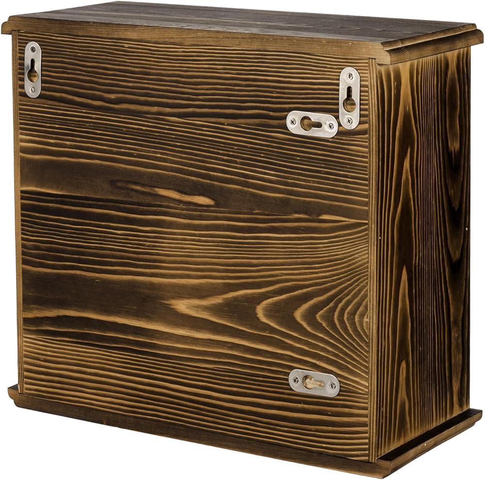 12 حجرة مميزة على رف التعليق هذا مع هيكل من الخشب الصلب بلمسة نهائية بنية محروقة ريفية لتخزين أحزمة التصنيف الملفوفة بشكل أنيق.