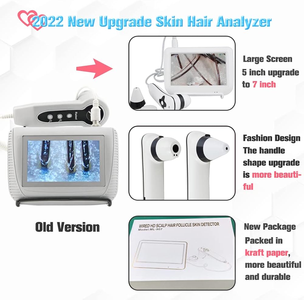 【تحليل الجلد واختبار الشعر 】: يمكن استخدامه للكشف عن مشاكل الجلد مثل البثور وبقع اللون والالتهابات وما إلى ذلك. مناسب لاختبار محتوى زيت فروة الرأس ورطوبة الشعر والمرونة وما إلى ذلك. جيد لحل مشاكل فروة الرأس وبصيلات الشعر.