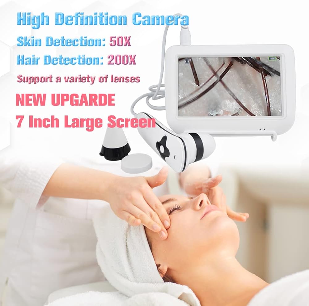 【مجهر الجلد مع عدستين 】: قياسي مع عدسة 50X، 200X، كشف الجلد مع 50X، كشف الشعر مع 200X، يدعم مجموعة متنوعة من العدسات.