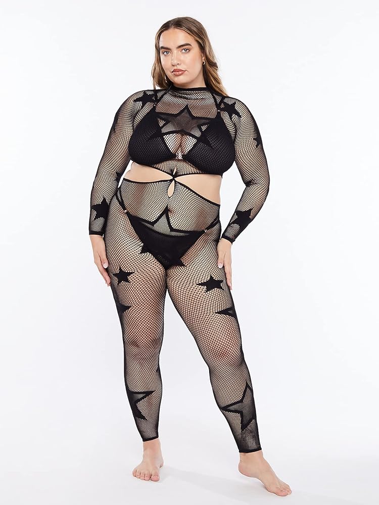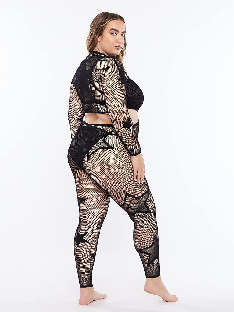 Our figure-hugging Shining Star Front-Twist Catsuit features bold disco-inspired knitted stars adorned on a seamless fishnet body stocking. Designed with seamless technology, our body stockings stretch and glide smoothly over your skin to hug your curves.