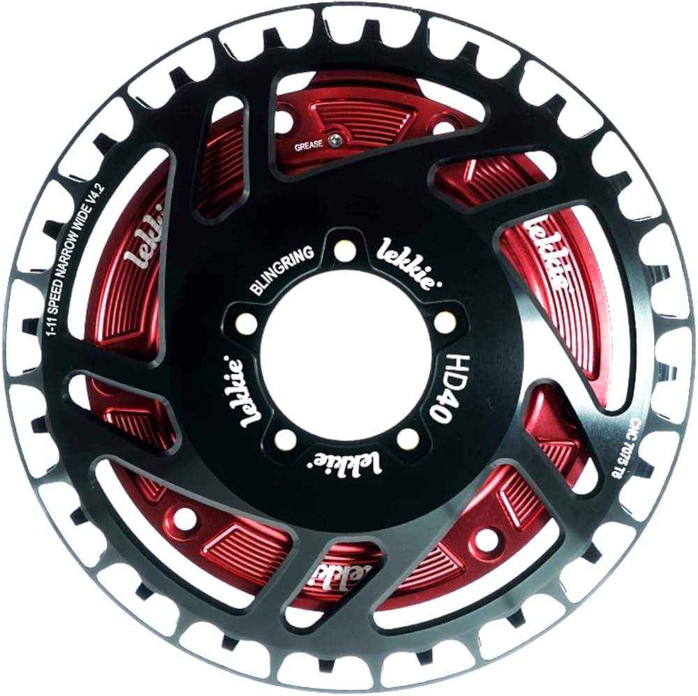 Bling, quality, performance In the past the smallest ring that offered the perfect chain line was the Lekkie Bling Ring 42T, but that is no longer the case. The Lekkie Bling Ring 40T is now the smallest tooth count chainring available on the market that maintains the correct offset and chain line. Lekkie made this possible by also designing the motor drive cover to work together with the 40T ring to create the most compact offset drive ring. The Bling Ring 40T has 2mm more offset than the 42T for those builds that need a little more offset. Included in the package is a Bling Ring Spacer so that if you require the standard (18.3mm) offset you simply use the spacer. The 40T ring also features an external chain guide ring to give another level of chain retention and protect your pants from engaging the chain. To be able to run a 40T you must run the Lekkie Drivecover. The 40T package includes the 40T Bling Ring, 2mm Bling Ring Spacer and Drivecover. Designed in New Zealand in true Lekkie style to be the premium choice!