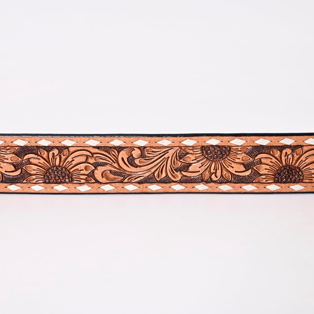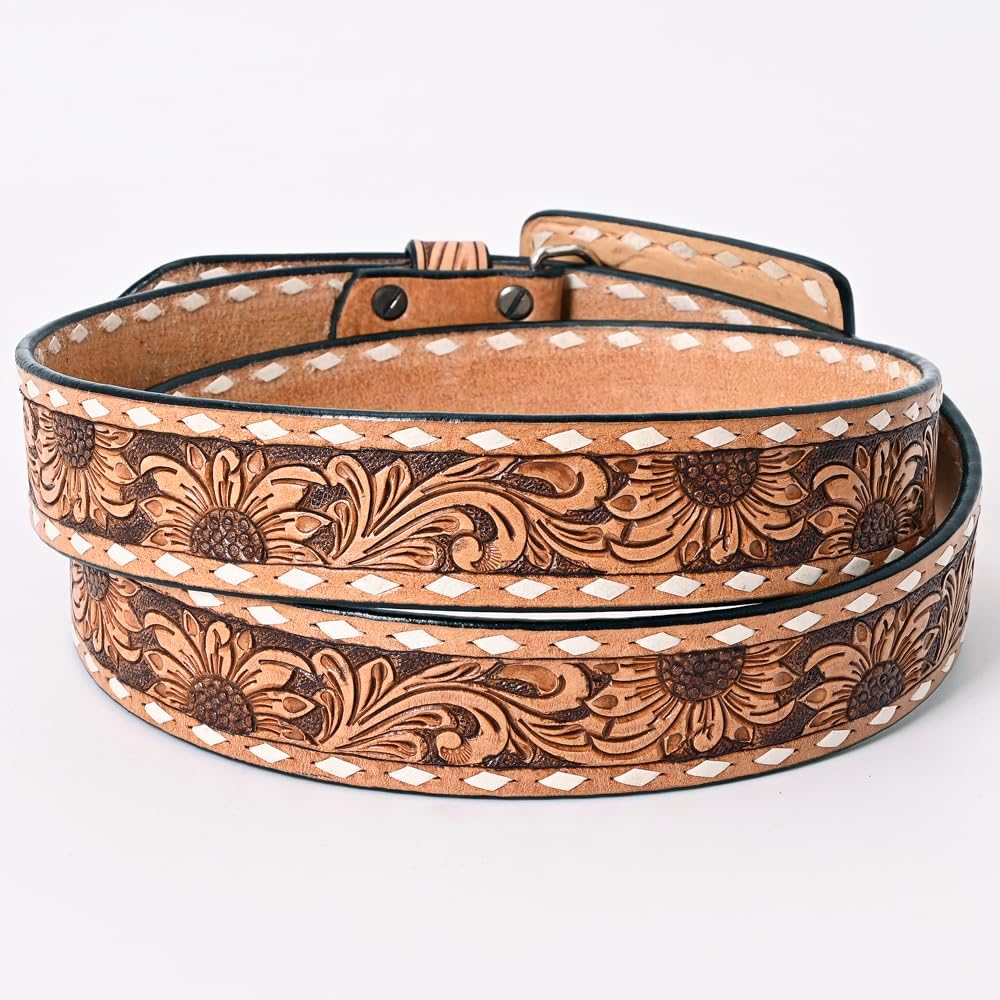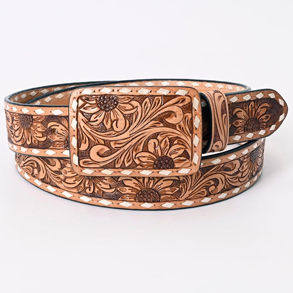 ✔ TOOLING-: The Western leather belts for men and women feature a detailed hand-tooled, hand-carved, and Hand-finished done by experienced craftsmen in the country. METAL BUCKLE: The belt is furnished with a removable high-quality matching hand-tooled leather-covered buckle, showcasing exceptional craftsmanship and attention to detail. STITCH Beautiful fancy stitch to add to the appeal. Our belts embody quality, style, and heritage.