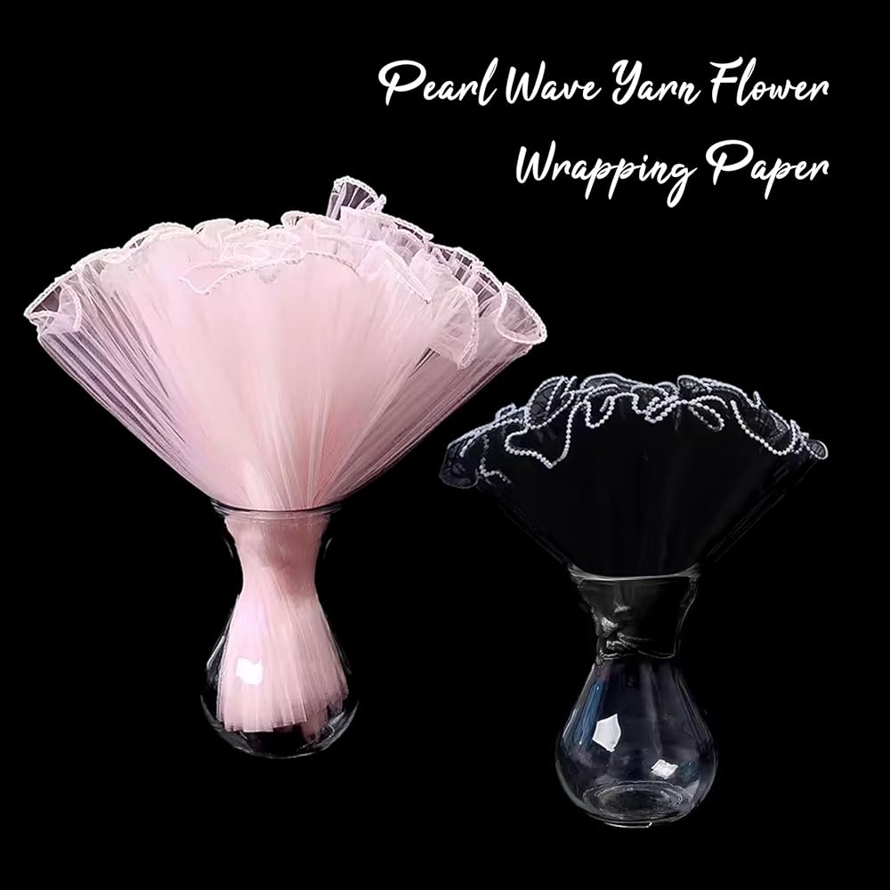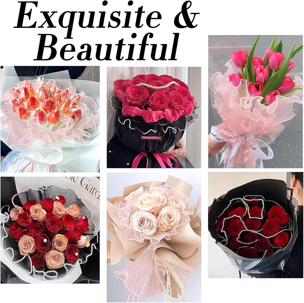 🌷 "Exquisite Aesthetics" - Our flower paper wrap features a French wave lace design, embellishing your bouquet with a border of elastic ruffles and pearls. This blend of elegance and simplicity turns your floral arrangements into statement pieces