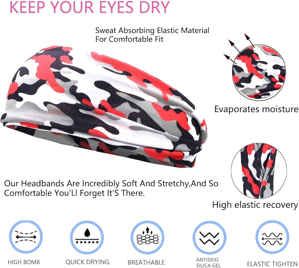 Fashion unique design: The sports headband is designed in a variety of colors and camouflage prints to complement your sportswear.