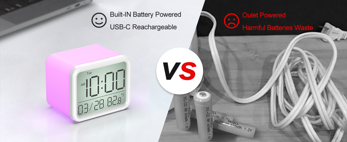 [بطارية مدمجة قابلة لإعادة الشحن] يمكن شحن البطارية المدمجة بشكل متكرر، لذلك لا تحتاج إلى إهدار المال لشراء أي بطاريات AAA، مما يقلل بشكل فعال من نفايات البطارية الضارة ويحمي البيئة. يمكن أن تدوم ساعة منبه غرفة النوم المشحونة بالكامل لمدة أسبوعين على الأقل من الاستخدام العادي أو تحافظ على 6.5 ساعة عندما يكون كل من الضوء الليلي والإضاءة الخلفية في أقصى سطوع.