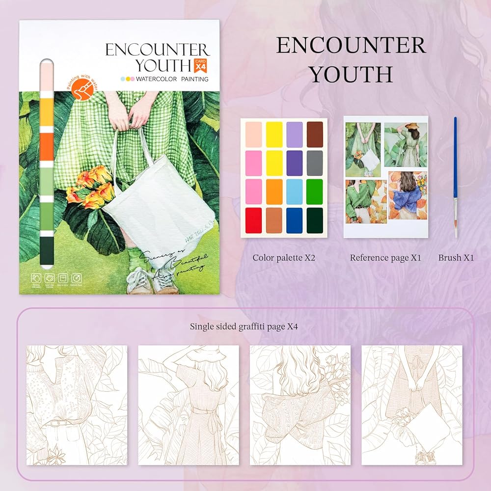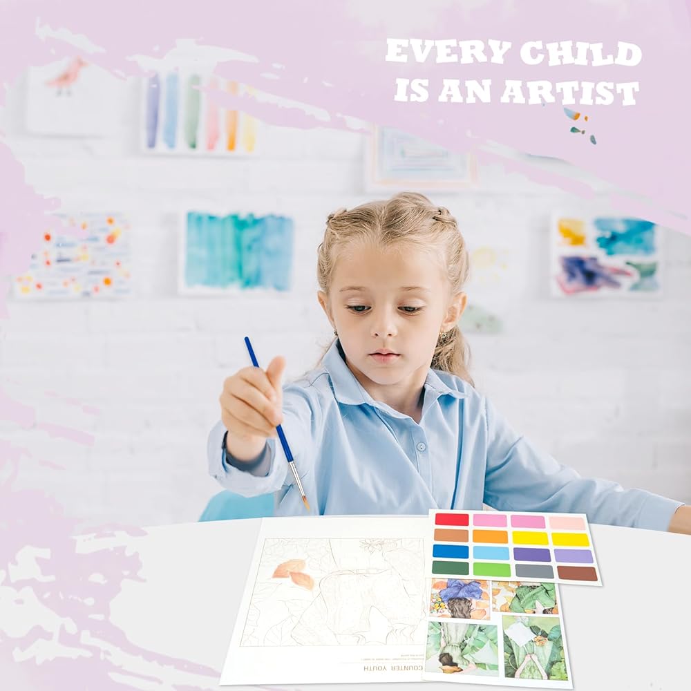 • طلاء بتصميم جديد مع مجموعة مياه: امنح طفلك رحلة إبداعية مثالية مع مجموعة كتب الرسم الكل في واحد. يأتي كل كتاب مع 4 صفحات تلوين مختلفة، ولوحة طلاء 16 لونًا مطبوعة *2، وصورة مرجعية واحدة، وفرشاة ومساحة لحامل الفرشاة. كل ما تحتاجه هو كوب من الماء، مما يجعل من السهل على الأطفال الرسم، سواء في المنزل أو أثناء التنقل.