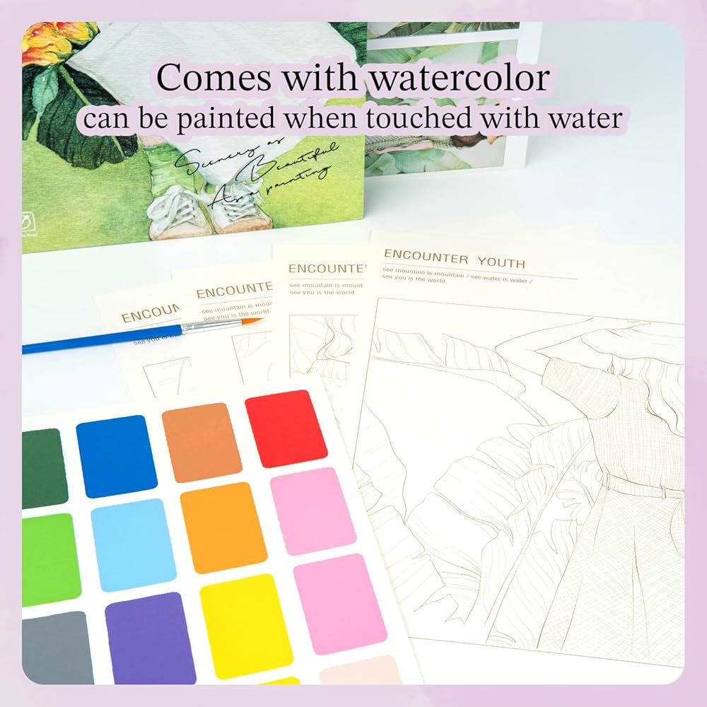• جودة فاخرة: تتميز الكتب بصفحات سميكة عالية الجودة مثالية للرسم بالألوان المائية. قل وداعًا لنزيف الحبر ومرحبًا بالألوان النابضة بالحياة والدائمة في كل صفحة.