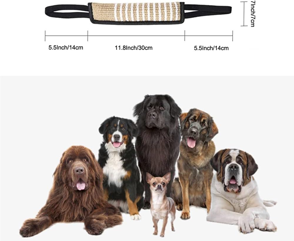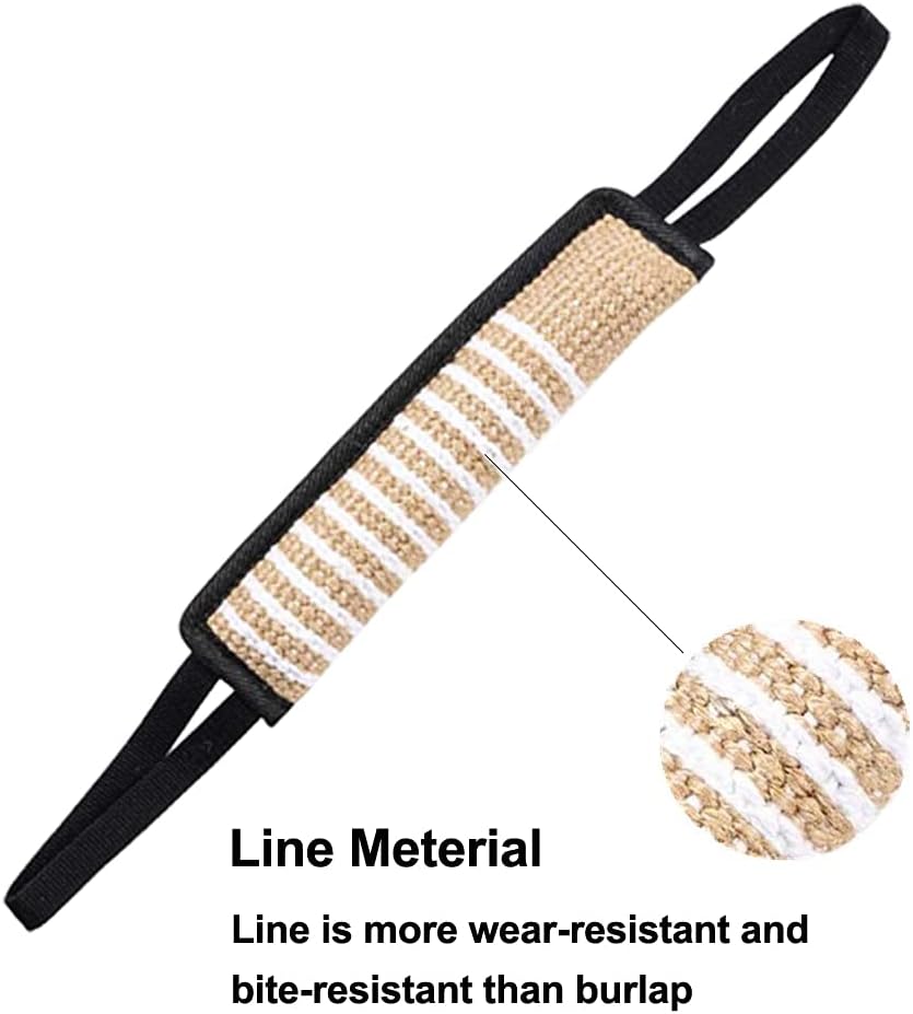 【حجم مثالي】تتميز لعبة الشد للكلاب مقاس 12 × 3.2 بوصة بمقبضين ناعمين وقويين مما يمنحك المزيد من خيارات وضع اليد وقبضة مريحة وآمنة. المقابض مصنوعة من مادة النايلون عالية الجودة لمنع يديك من حروق الحبال والجروح. .