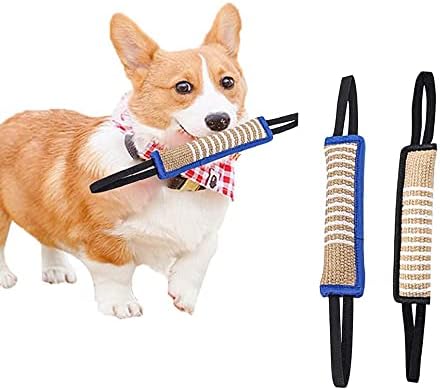 TAIKUU 久の物 قطعتان من لعبة شد الكلاب، لعبة شد الحبل للكلاب، لعبة سحب وسادة عض الجوت مع مقبضين ناعمين وقويين، عصا عض الكلاب لتدريب الجراء واللعب التفاعلي، لعبة سحب الجوت