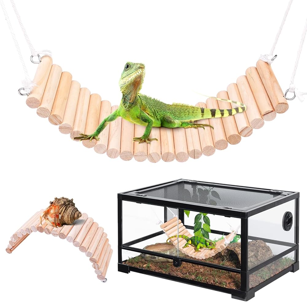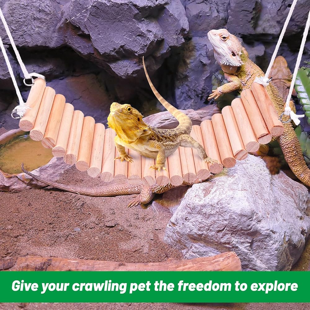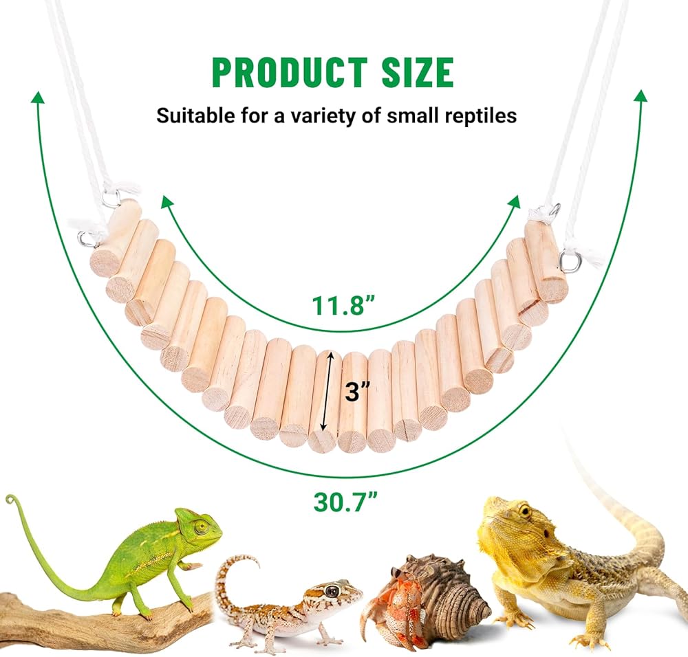 Safe Design: Our lizard climbing toy is made of safe wood with specially designed seams, flat and smooth edges won't snag lizard's claws or small snakes, ensuring that your pets are able to walk freely on the bridge, and that they are free to explore and show off their skills, while you can easily observe and care for them.