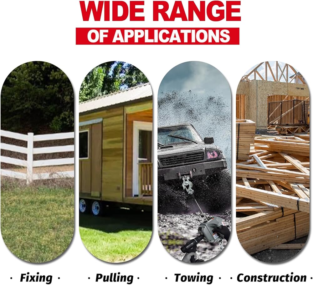 • 【تطبيق واسع】: الرافعة القادمة مناسبة لحالات السحب المختلفة. التعامل مع السجل، وتمديد الدرابزين، والتعامل مع عربات الثلوج، وما إلى ذلك. وإذا كانت لديك أي أسئلة، يمكنك استشارة فريق ما بعد البيع لدينا