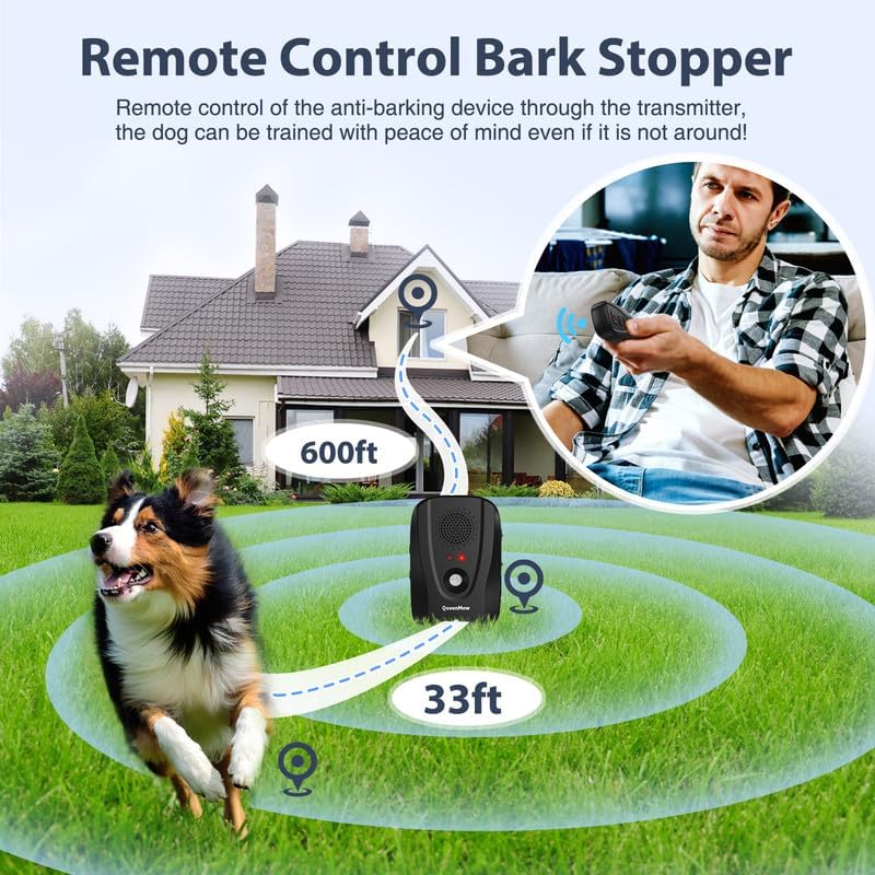 • 🐕Barking Stopper Effective Range Up To 33 Feet--The maximum detection range of the bark control device is 33 feet, if the dog is more than 33 feet away from the device, it will not be triggered to work by the barking of the dog. The remote control has a control range of up to 600 feet, which means that even if your dog is not around, you can control the bark stopper via remote control, and the signal will not be affected by obstacles. Can be used both indoors and outdoors.