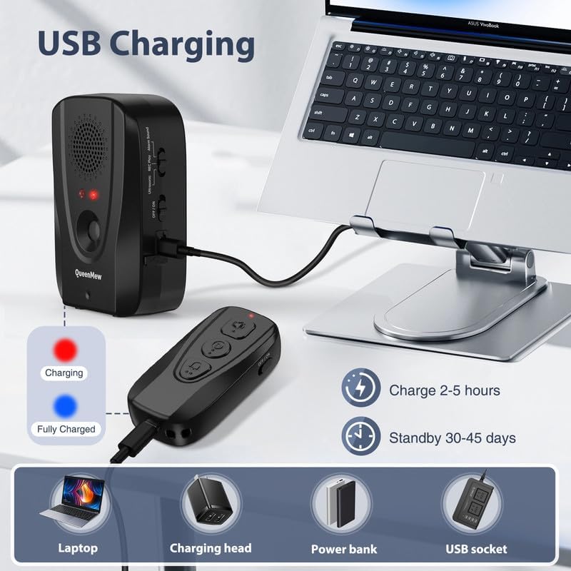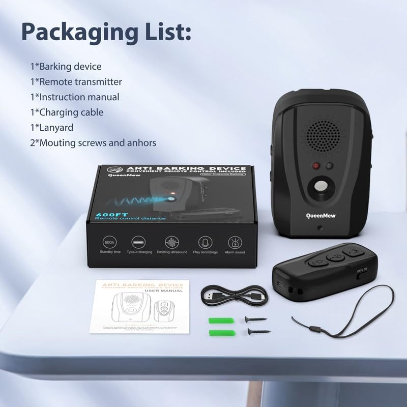 🔋Both the anti-barking device and the remote control can achieve ultra-long standby time of 30 days or more when fully charged. Please pay attention to charging in time.