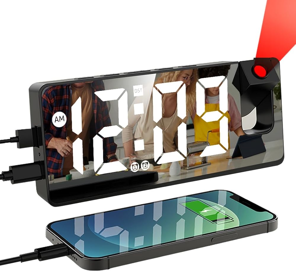 08/10) Fashion design works as a mirror): these dual alarm clocks for bedrooms with an acrylic surface, the clock with projection on ceiling can be used as a mirror, a mirror digital clock great for travel. a lovely projection clocks for bedroom, projector alarm clock for bedroom ceiling, alarm clock that projects time on ceiling.