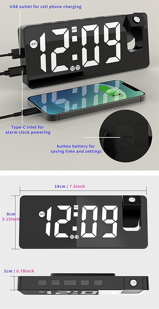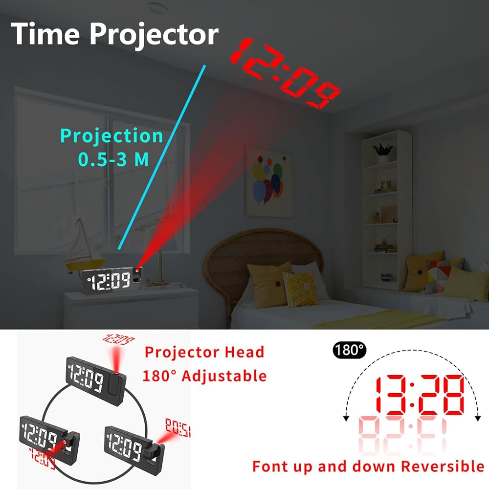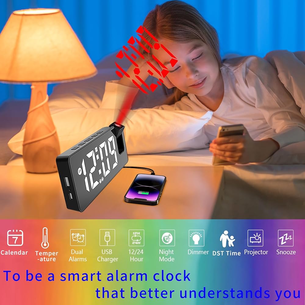 09/10) Gifting for any occasion ): This alarm clock for bedroom clocks digital is a great gift for everyone, old or young, men or women. and suitable for any birthdays, or festivals: New Year's Day, Christmas, Thanksgiving Day, Father's Day, Valentine's Day, Mother's Day, etc. students need this led digital clock for desk, bedside clocks bedroom alarm clock digital; boy or girl love this alarm clock with projector, clock projector on ceiling too.